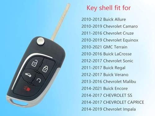 Upgraded Modified Key Fob Case Replacement for Chevy Cruze Camaro 5 Buttons