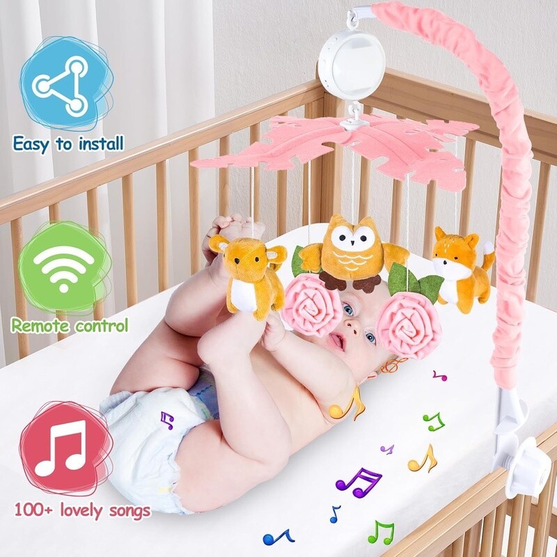 Baby Crib Mobile Music Lights Remote Control Rotation Starlight Projection Toys