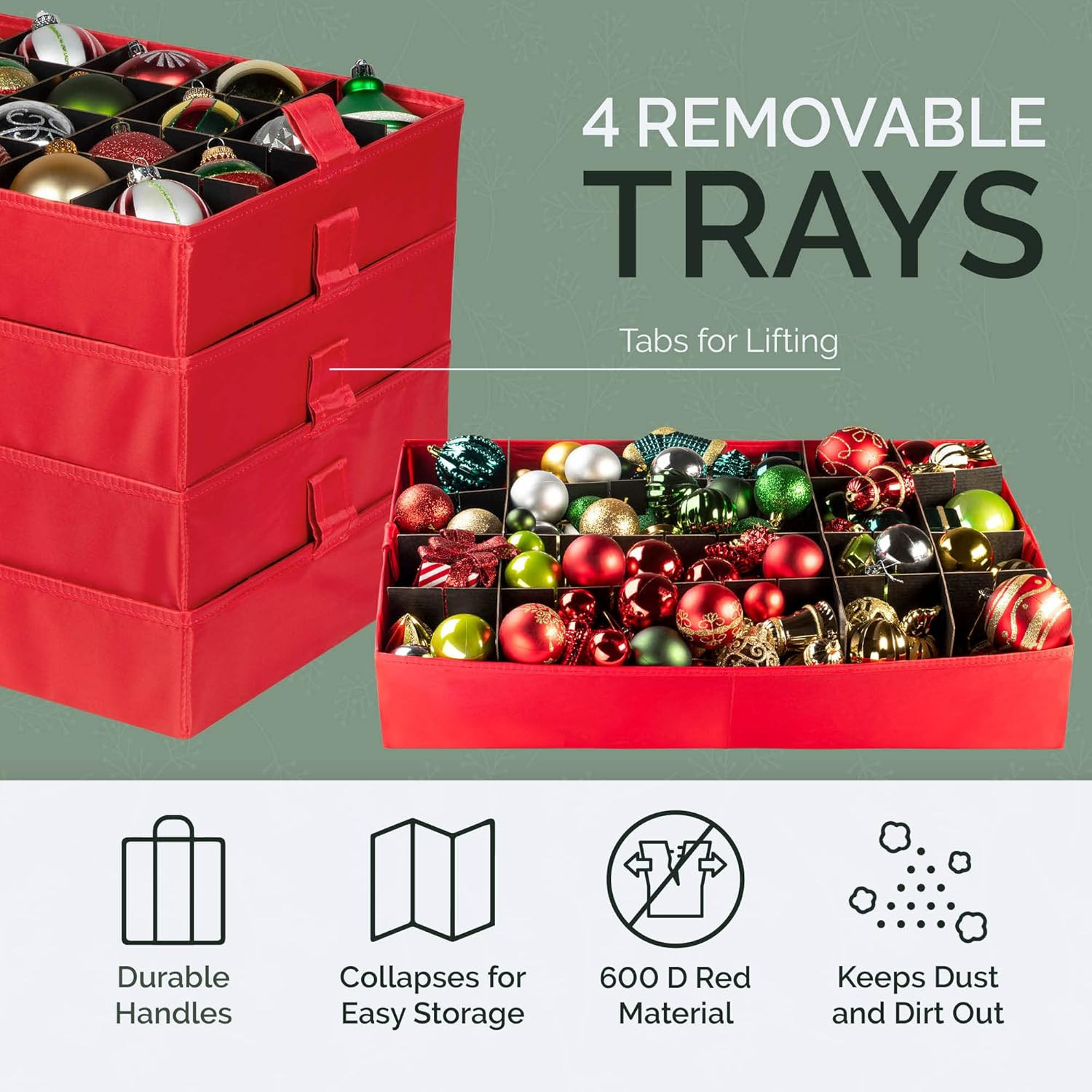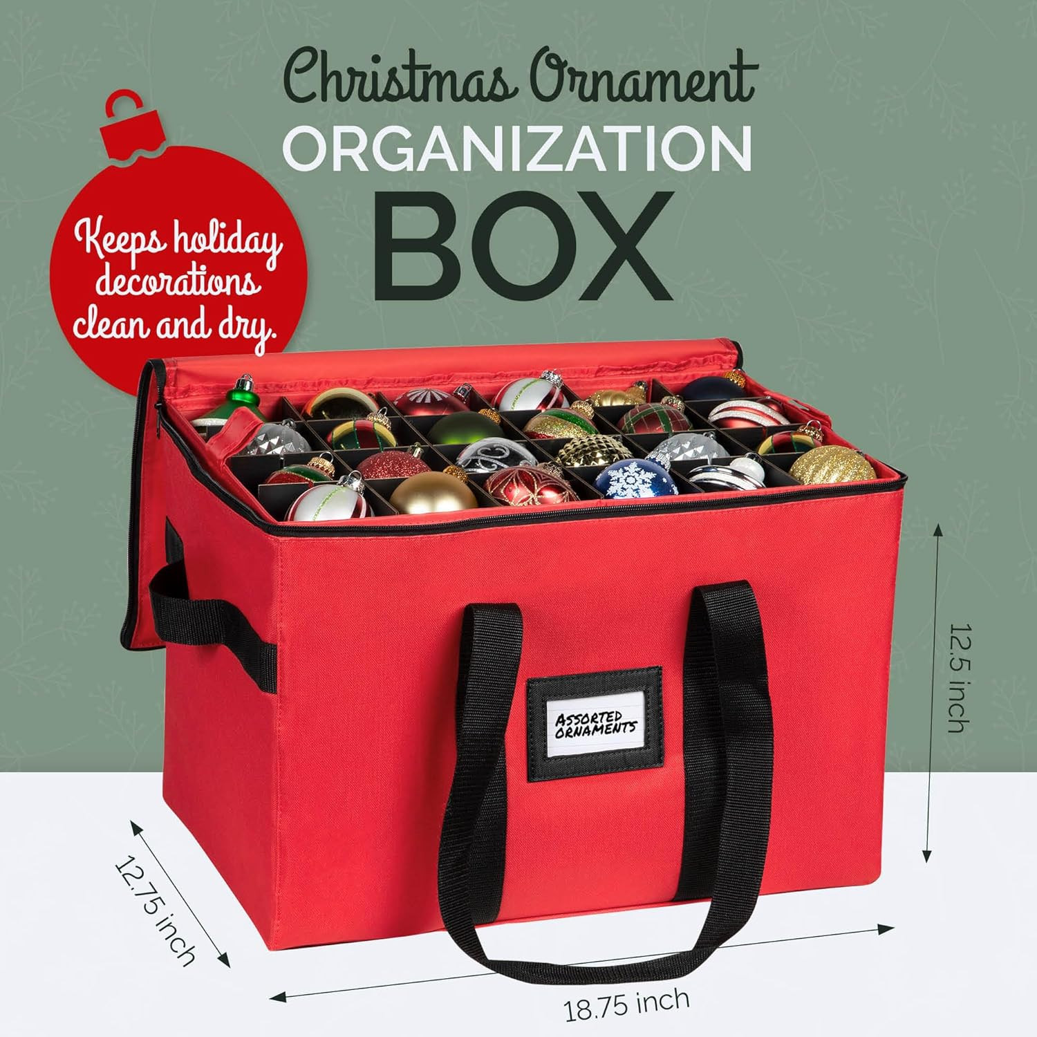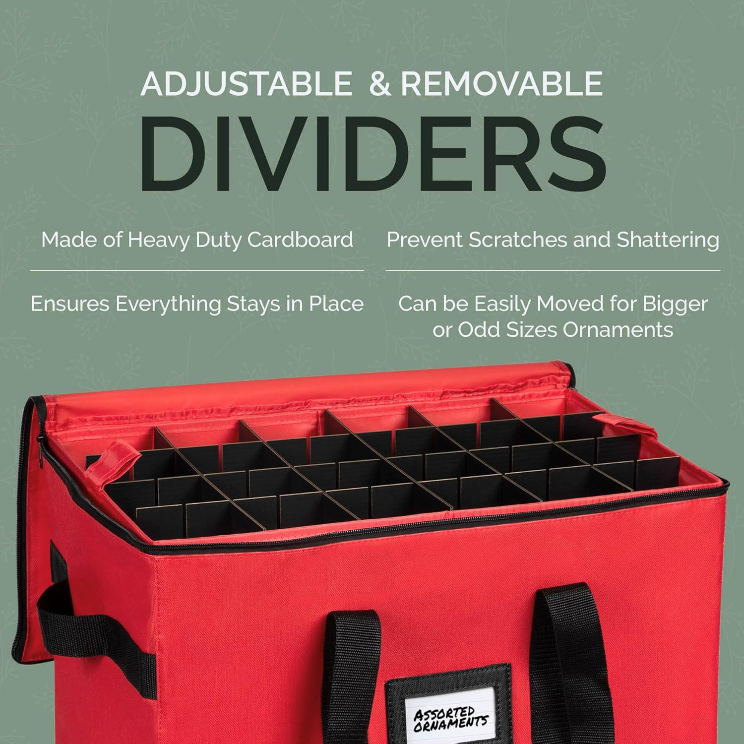 Christmas Ornament Storage Container,Box Stores up to 96, Adjustable Dividers, L