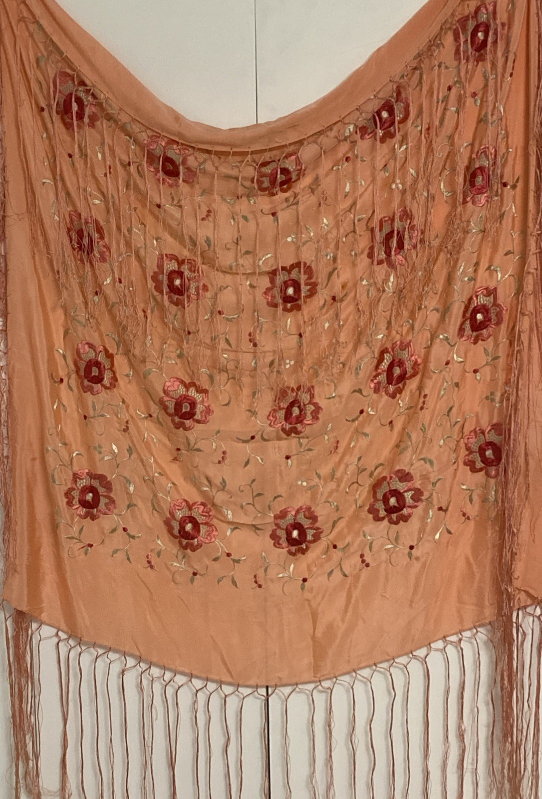 Antique Embroidered SILK Pink PIANO SHAWL Chinese Floral Pattern