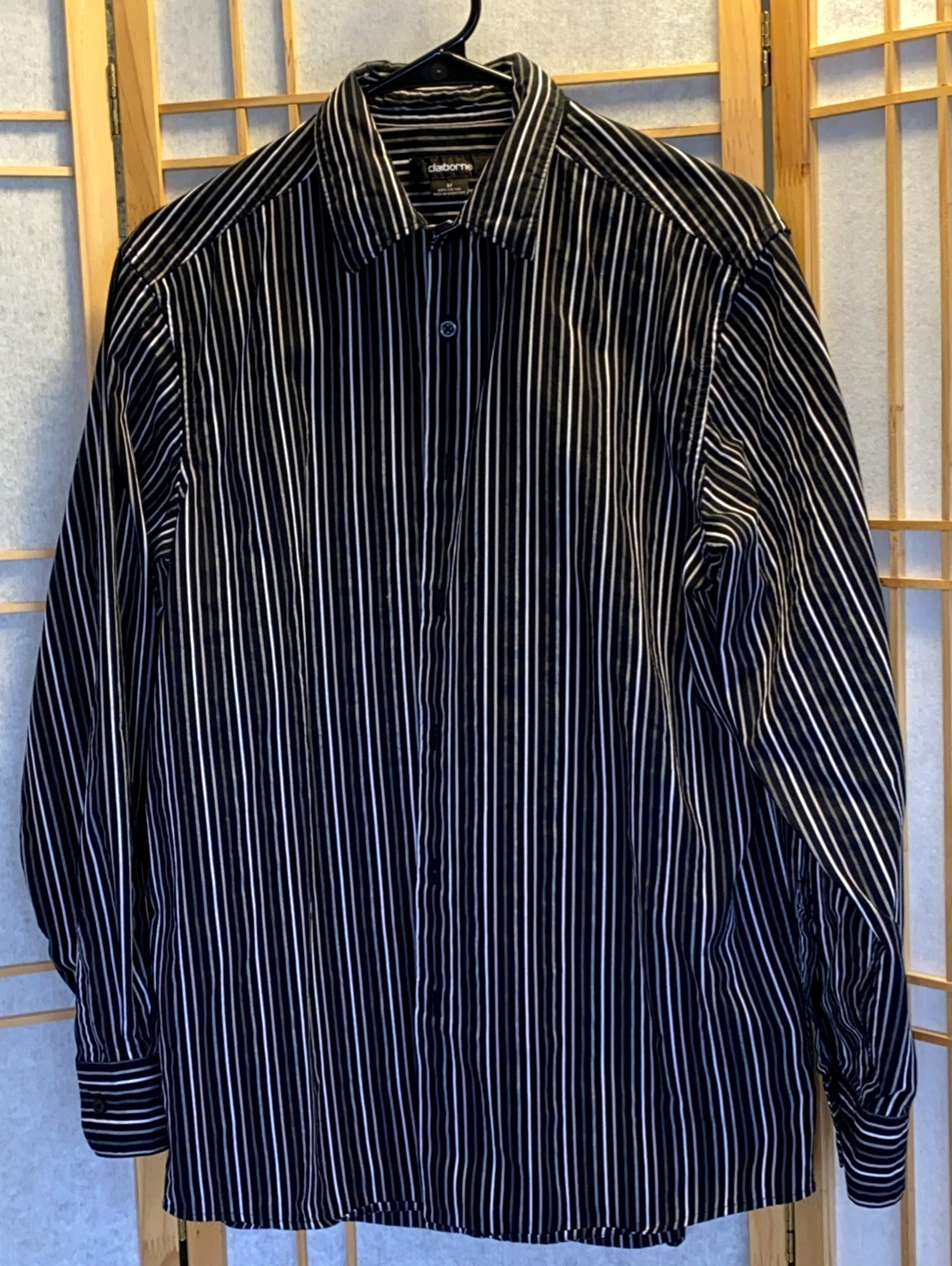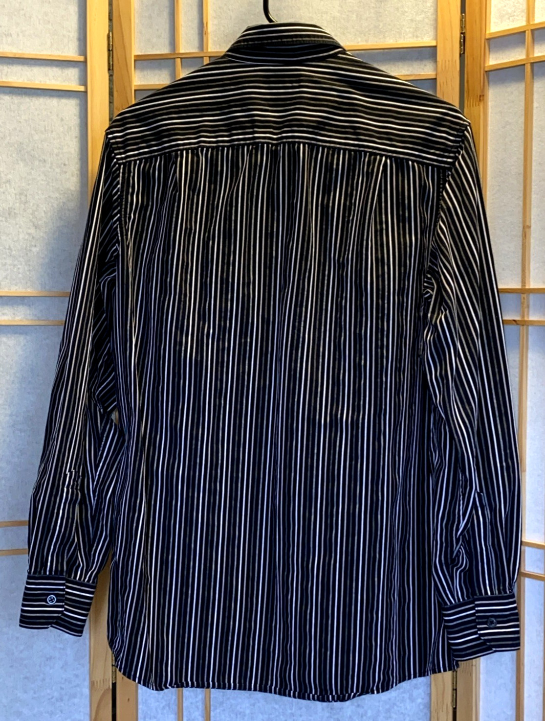 CLAIBORNE Men's MEDIUM Dress Shirt Black Striped Long Sleeve Cotton