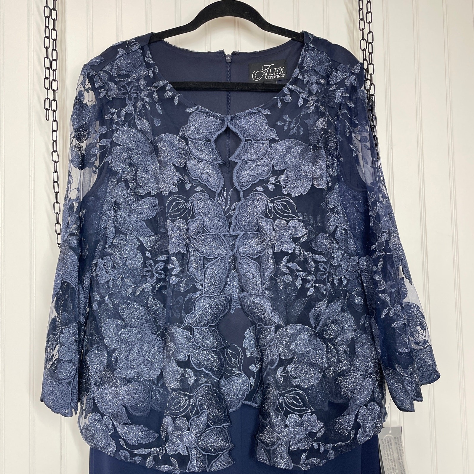 NWT Alex Evenings Navy Tea Length Mother Of The Bride Evening Dress 16 81122421