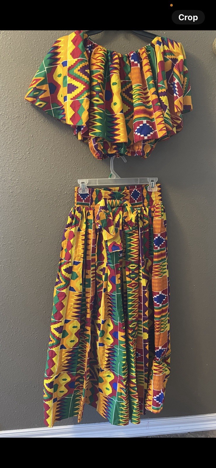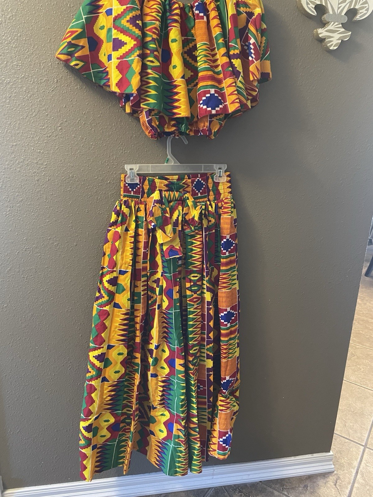 African Print Kente Off Shoulder And Maxi Skirt Set Size S Multicolored