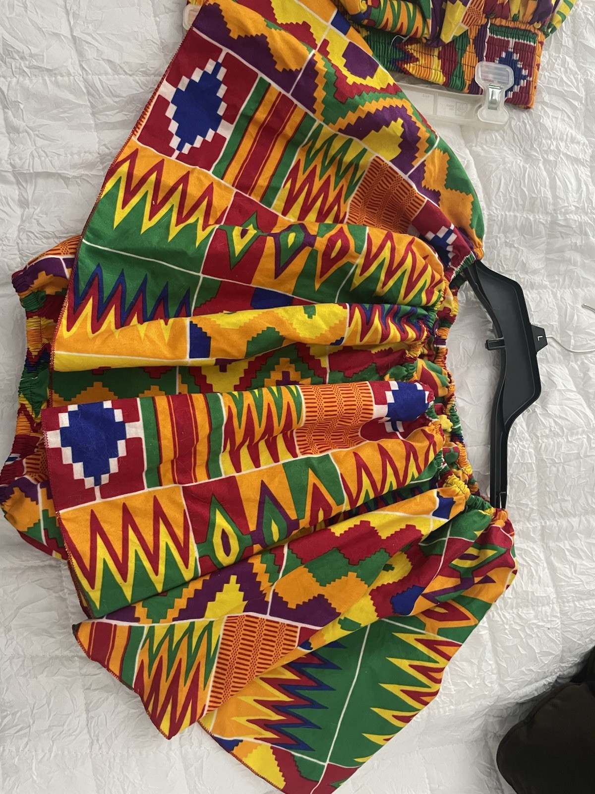 как выглядит African Print Kente Off Shoulder And Maxi Skirt Set Size S Multicolored фото