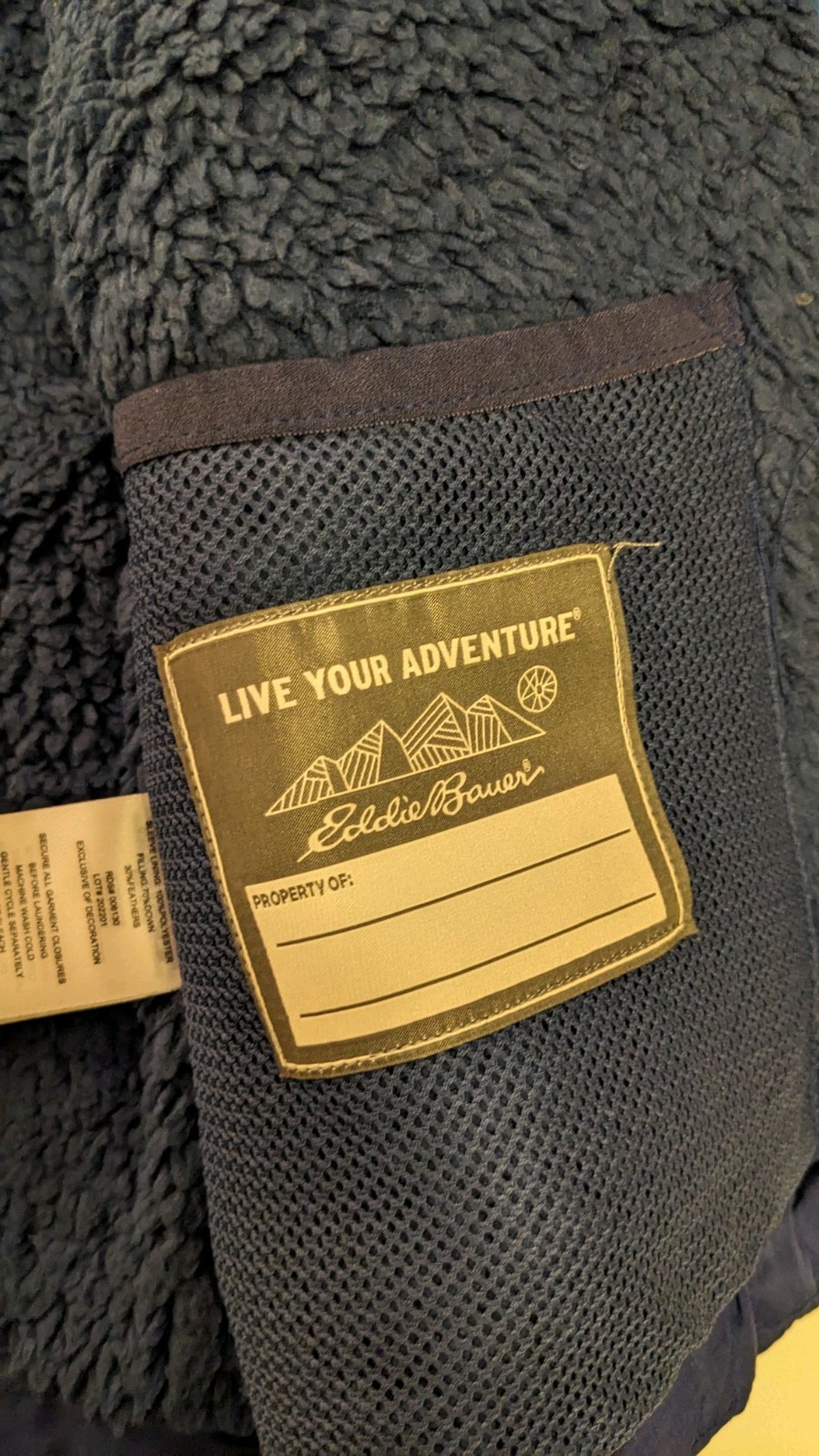 как выглядит Eddie Bauer Boys 7/8 Full-zip Hooded Sherpa-lined Jacket Nautical Blue NWT фото