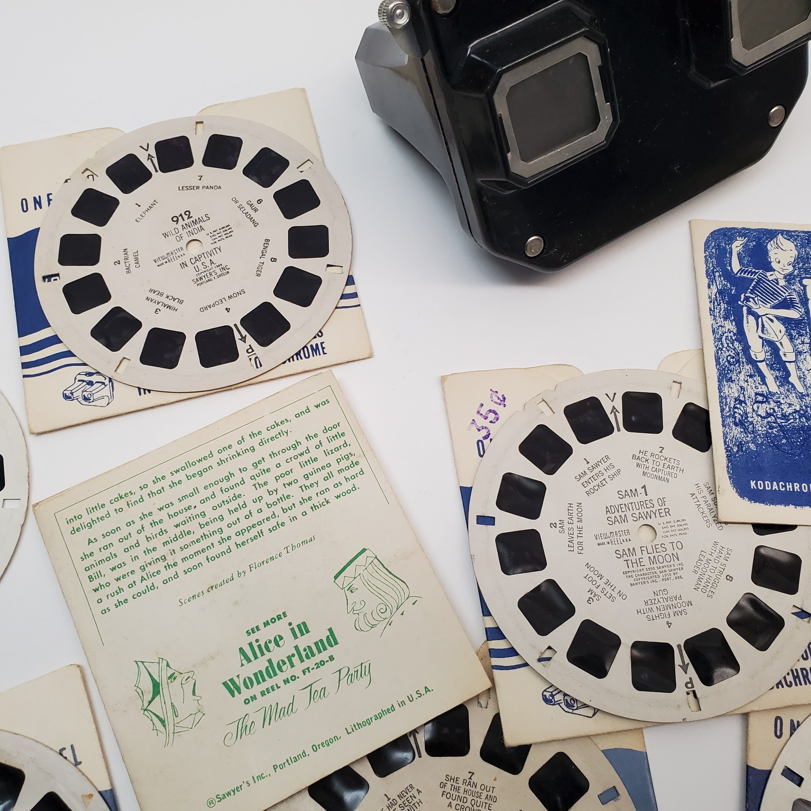 Vintage Sawyer's Black Bakelite View-Master Viewer with 12 Reels 1950s 60s