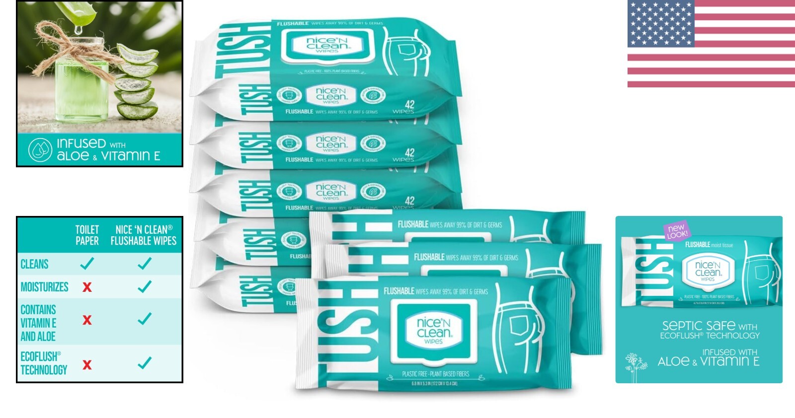 Hypoallergenic Flushable Wipes 336 Count Infused with Aloe Vitamin E