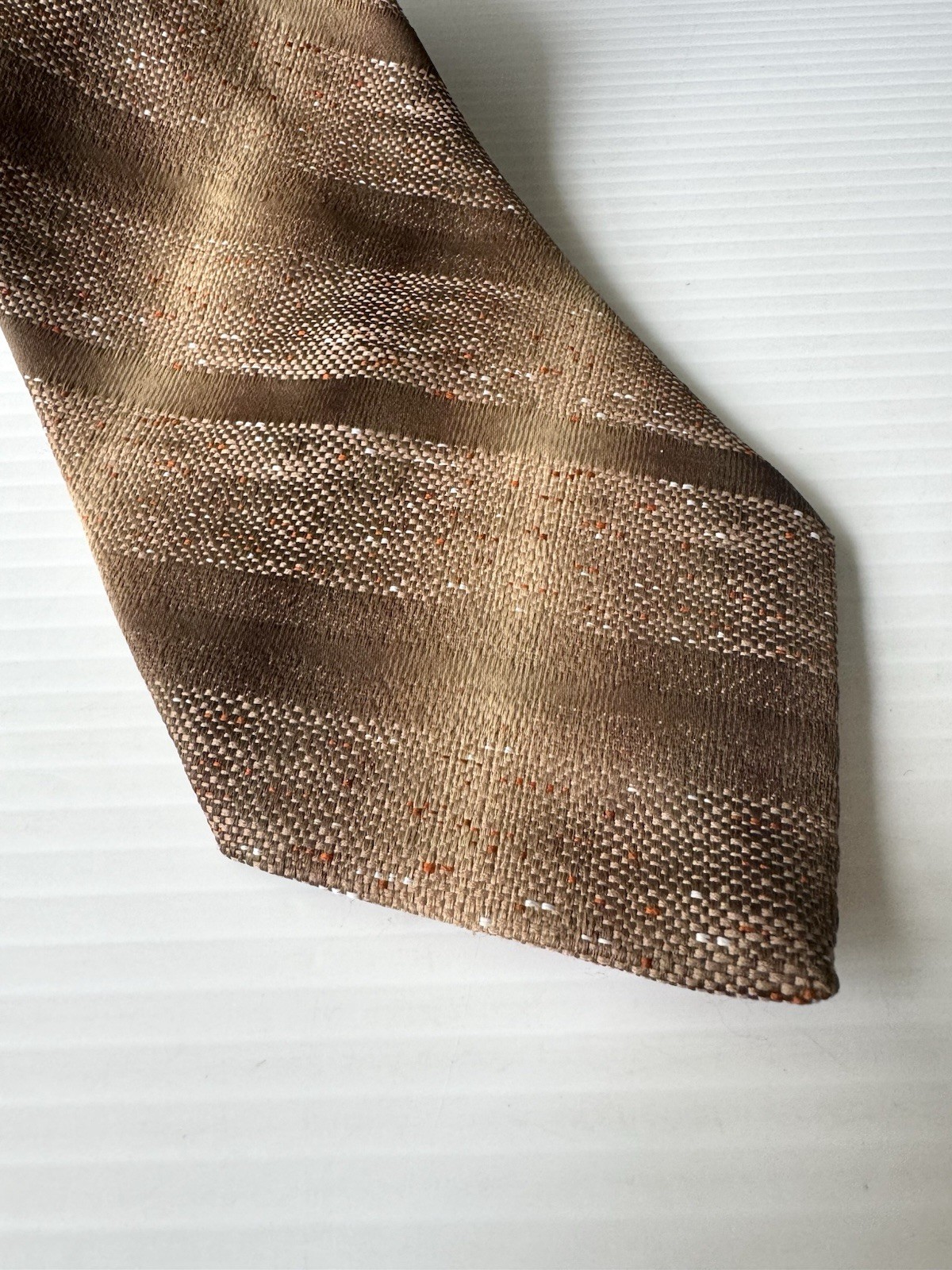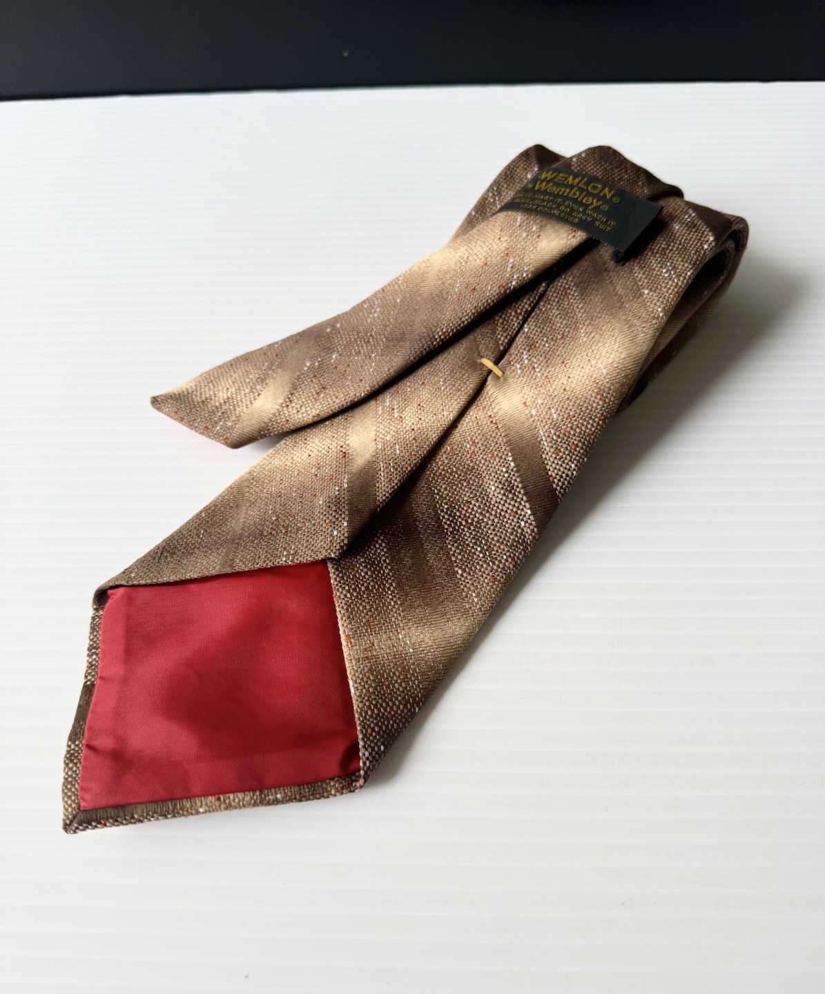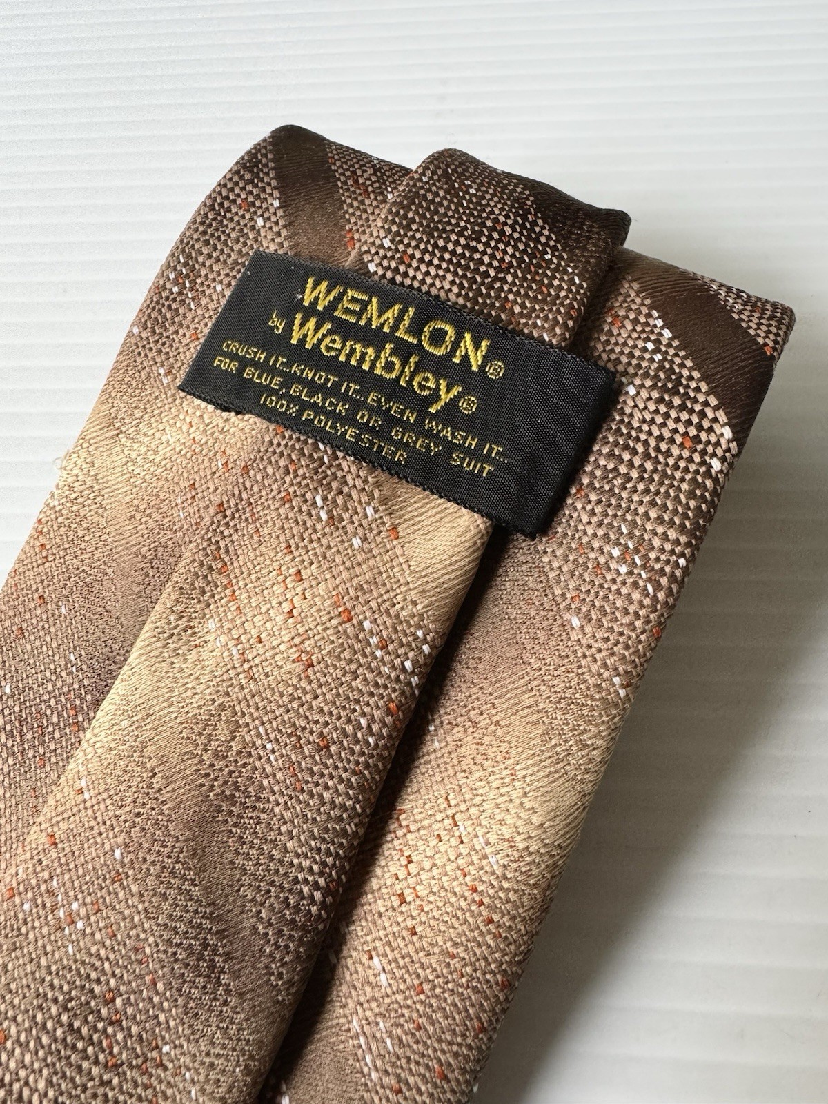 как выглядит Vtg MCM Wemlon By Wembley Necktie Brown/Bronze Stripe 55 X 4 Easy Care 1970 s фото