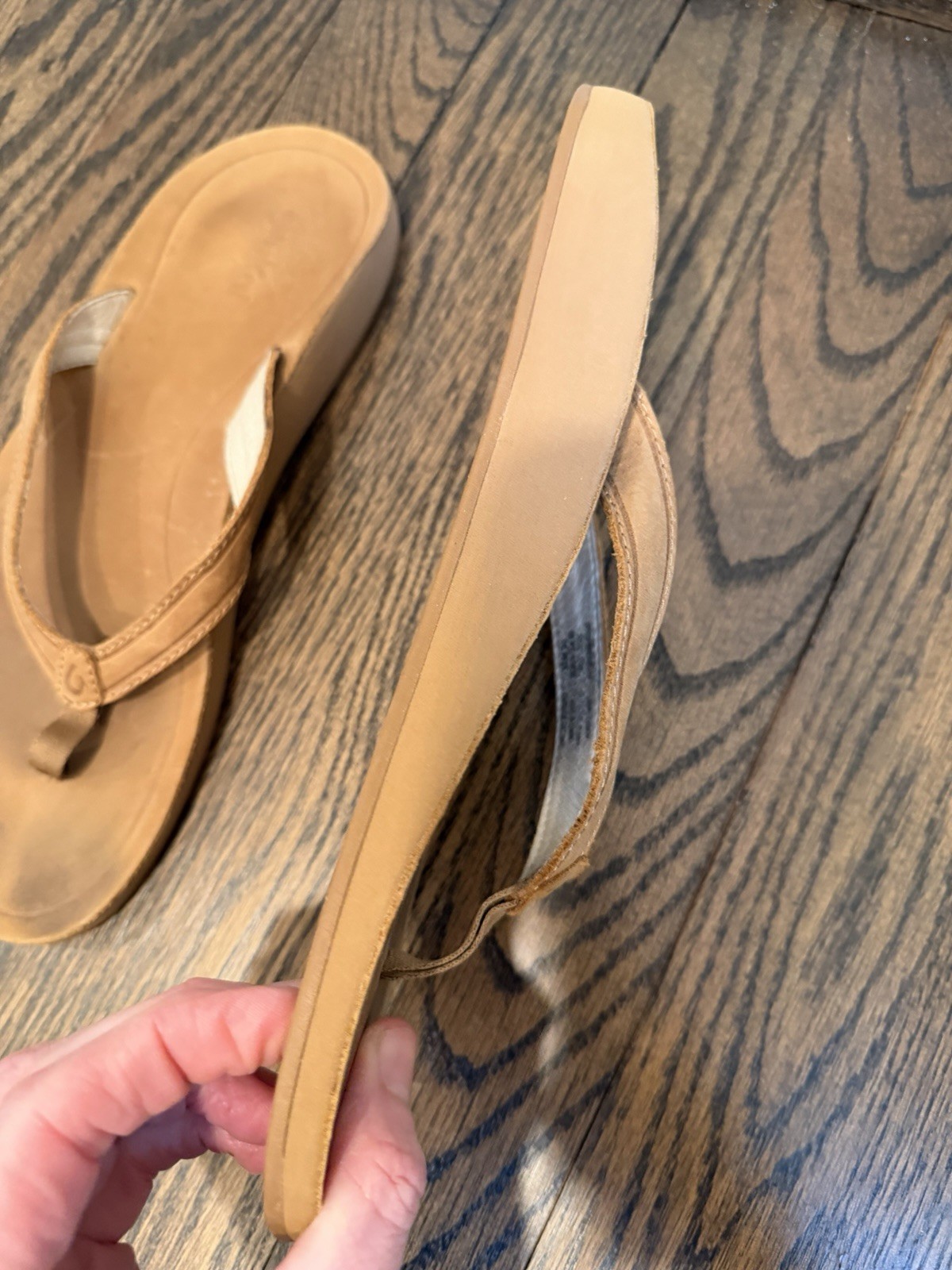 OluKai southshore Leather Flip Flop toffee Brown size 8 Waterproof Sandals 90