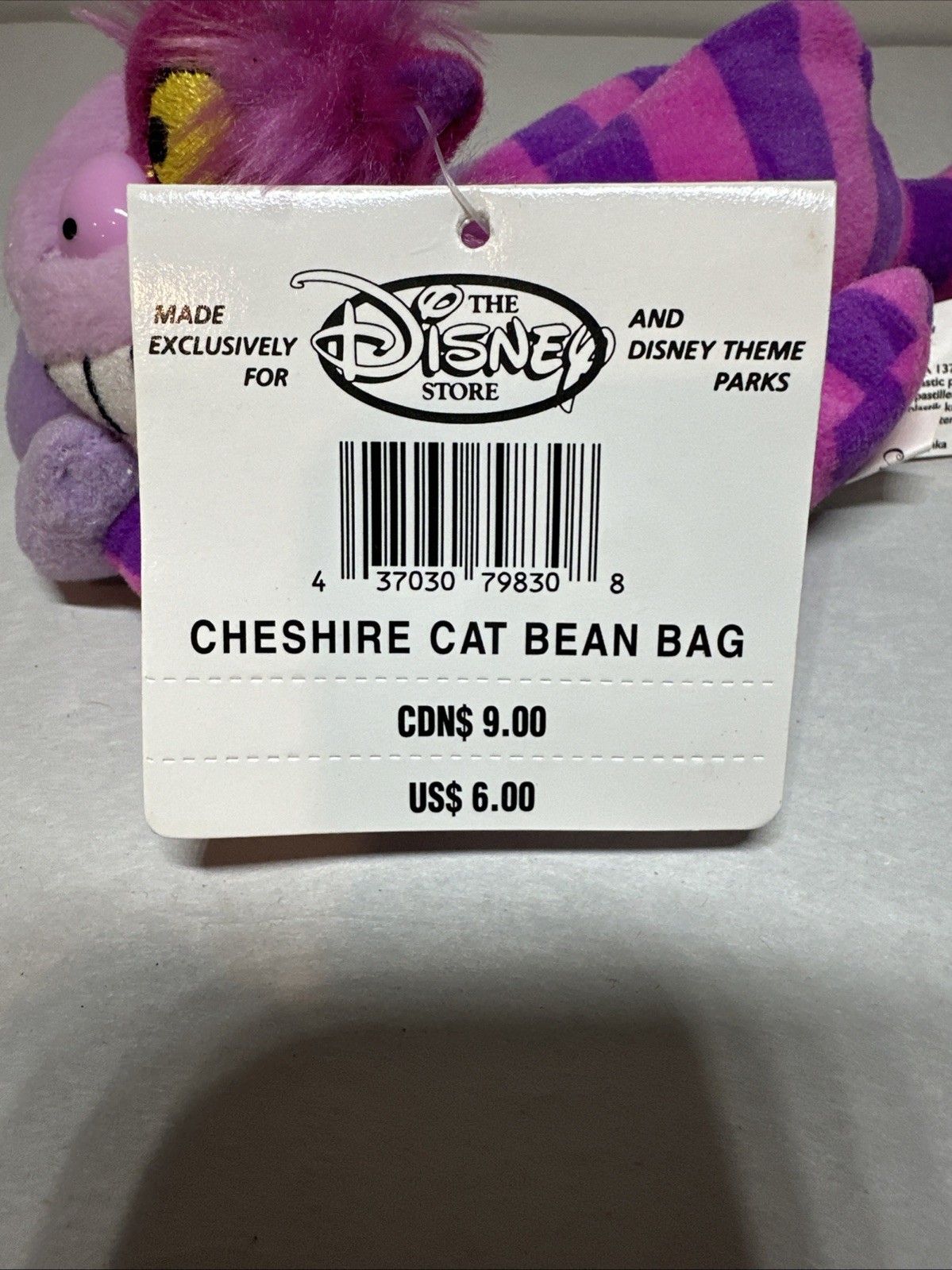 • Disney Store Alice Wonderland Cheshire Cat Bean Bag 9" Plush Stuffed Vintage Tag