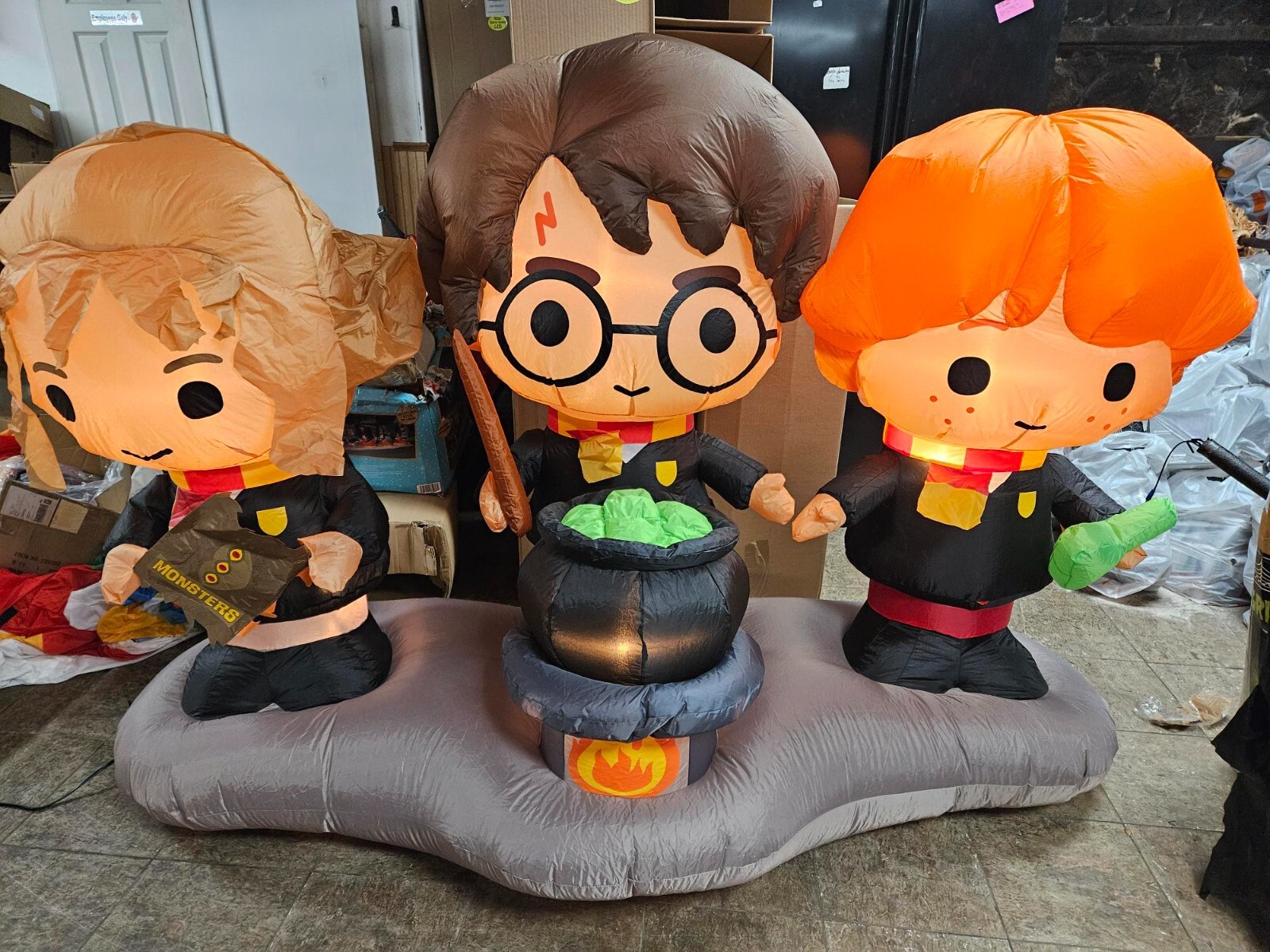 • Gemmy 7.5ft Wide Harry Potter, Hermione, Ron w/ Cauldron Halloween Inflatable