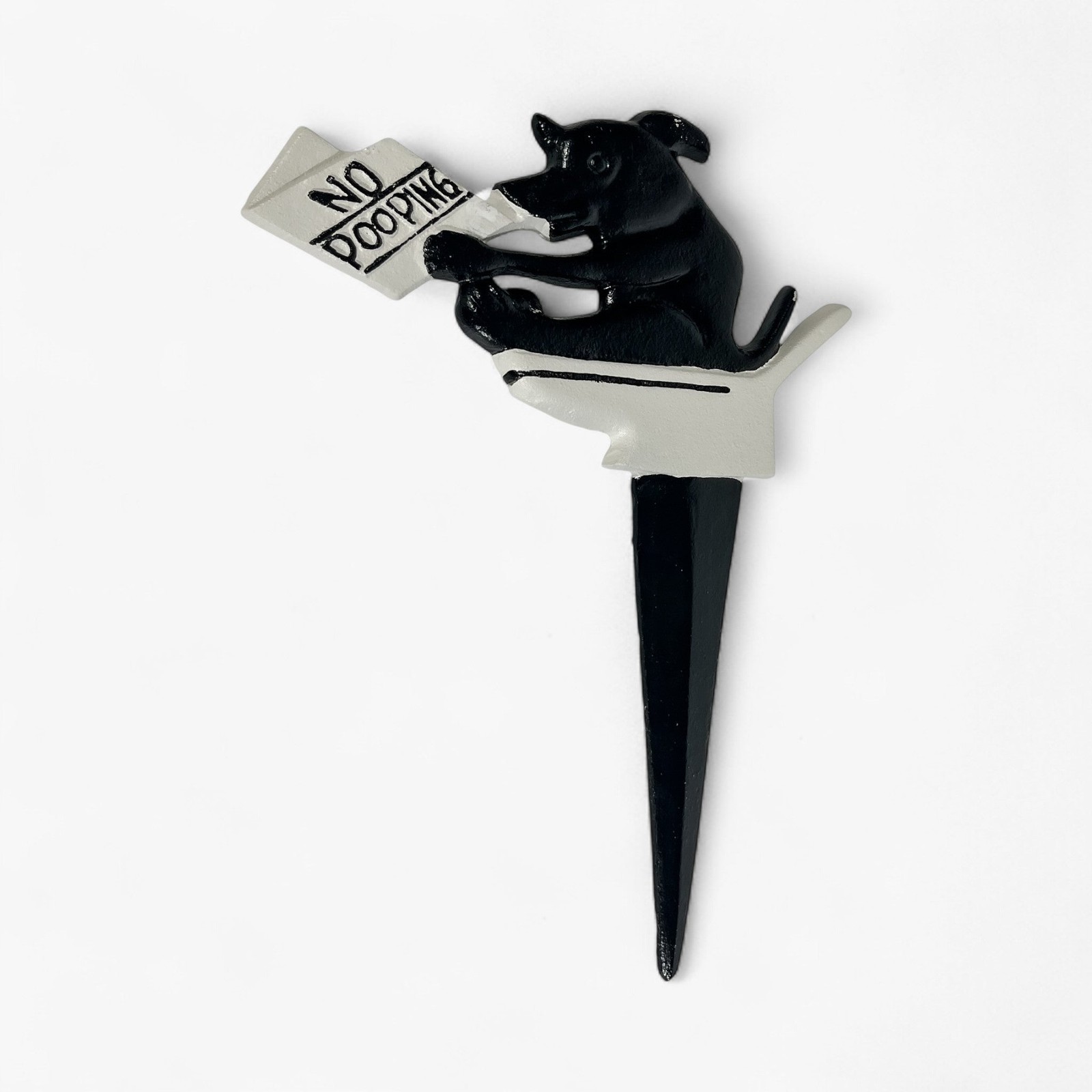 Dog No Pooping Garden Stake Cast Iron Yard Decor