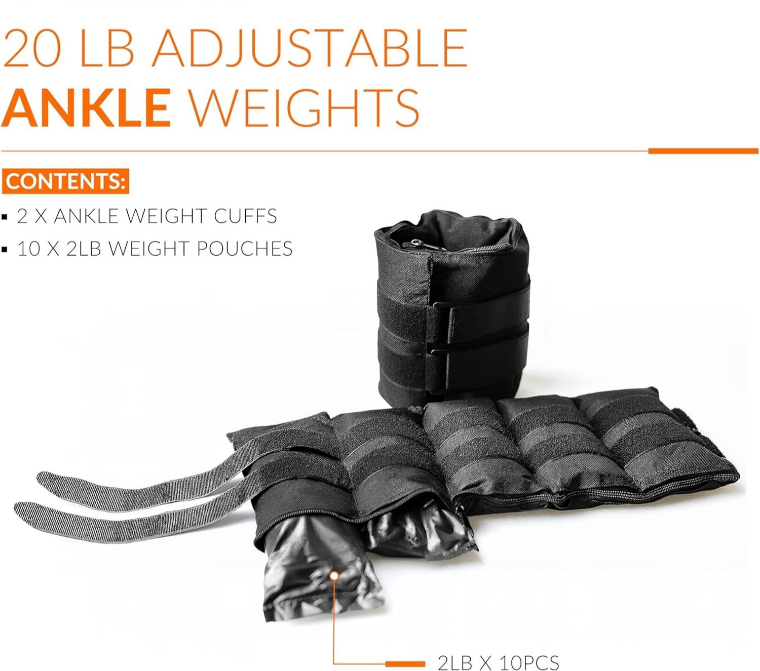 как выглядит Adjustable Ankle Weights Pair 10-20lb Strength Training Fitness Workout Black фото