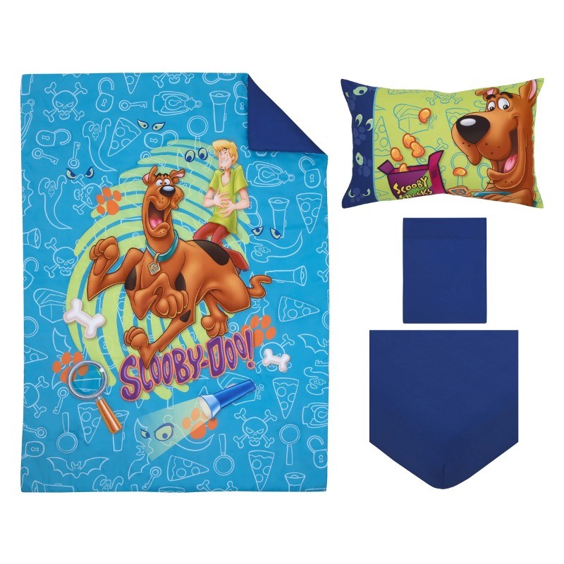 как выглядит Warner Brothers Scooby Doo Blue and Green 4 Piece Toddler Bedding Set, Polyester фото