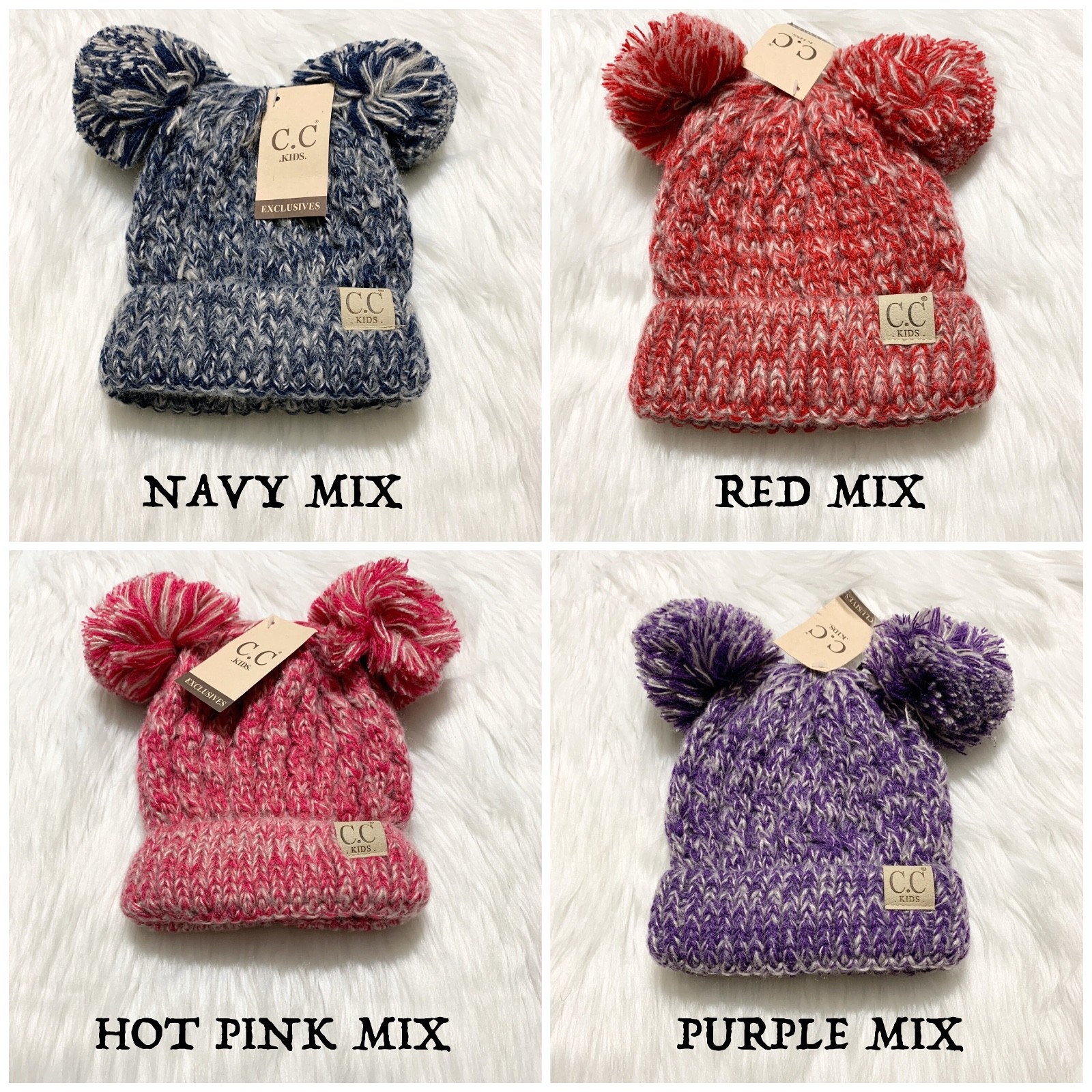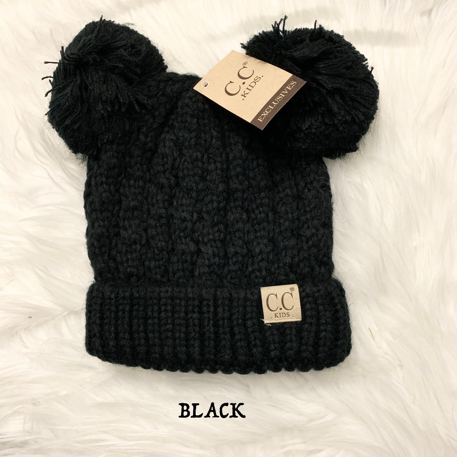 Kids C.C Premium Knit Double Pom Beanie, Warm Hat, Winter Beanies, Pom Pom Hat