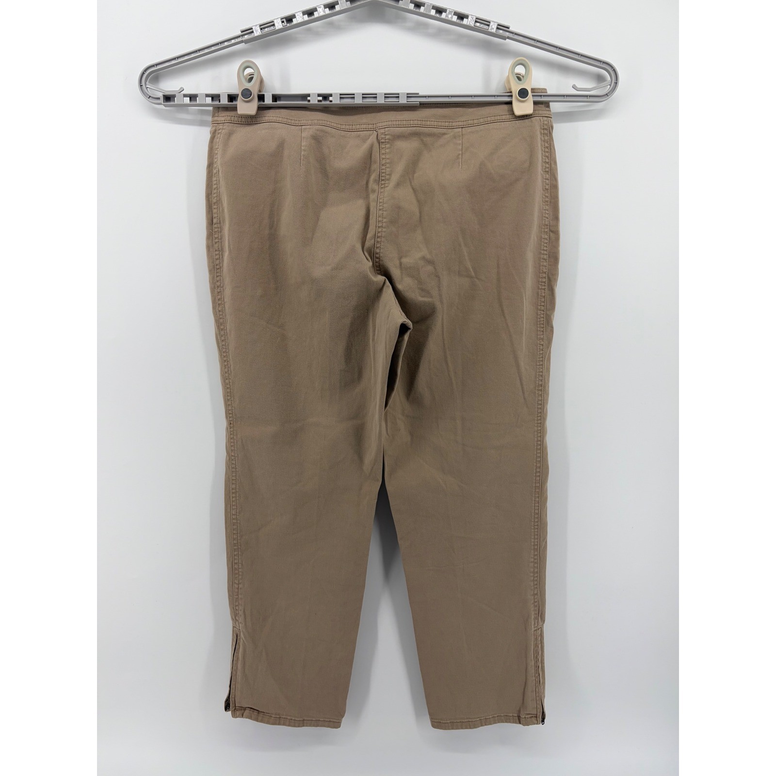 Talbots Women's Khaki Straight Leg Ankle Pants Size 14 Zip Cuffs Casual
