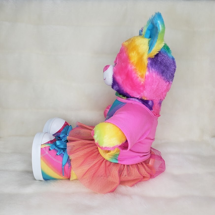 Build A Bear Rainbow Kitty Cat Plush w/ Outfit Shirt Tutu Shoes Swirl Stripe BAB