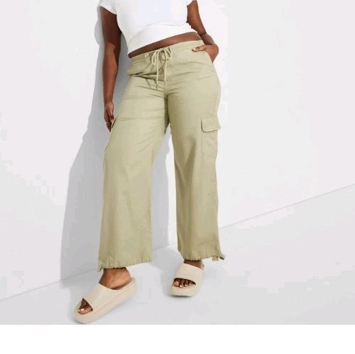 как выглядит Womens Mid-Rise Wide Leg Cargo Beach Pants Wild Fable Sage Green Size XXL фото