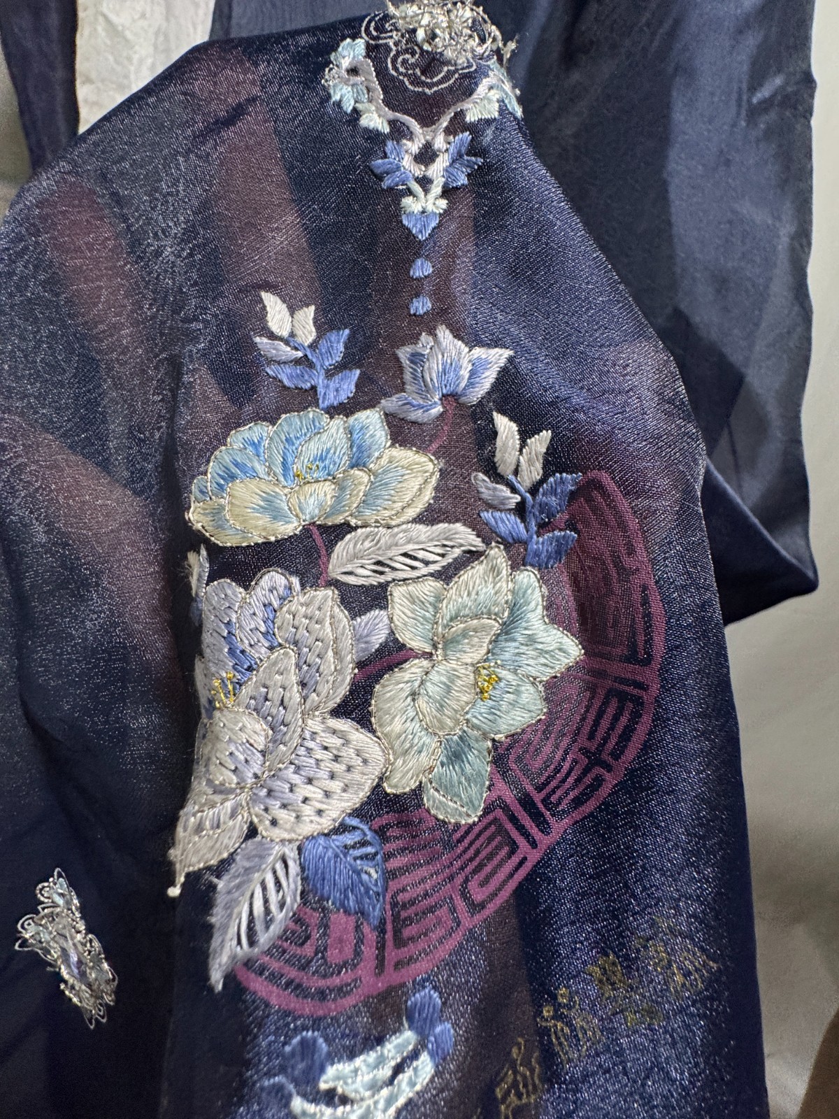 как выглядит Vintage Korean Hanbok Dress - 3pc Set with Undergarment - Navy Yellow - Floral фото