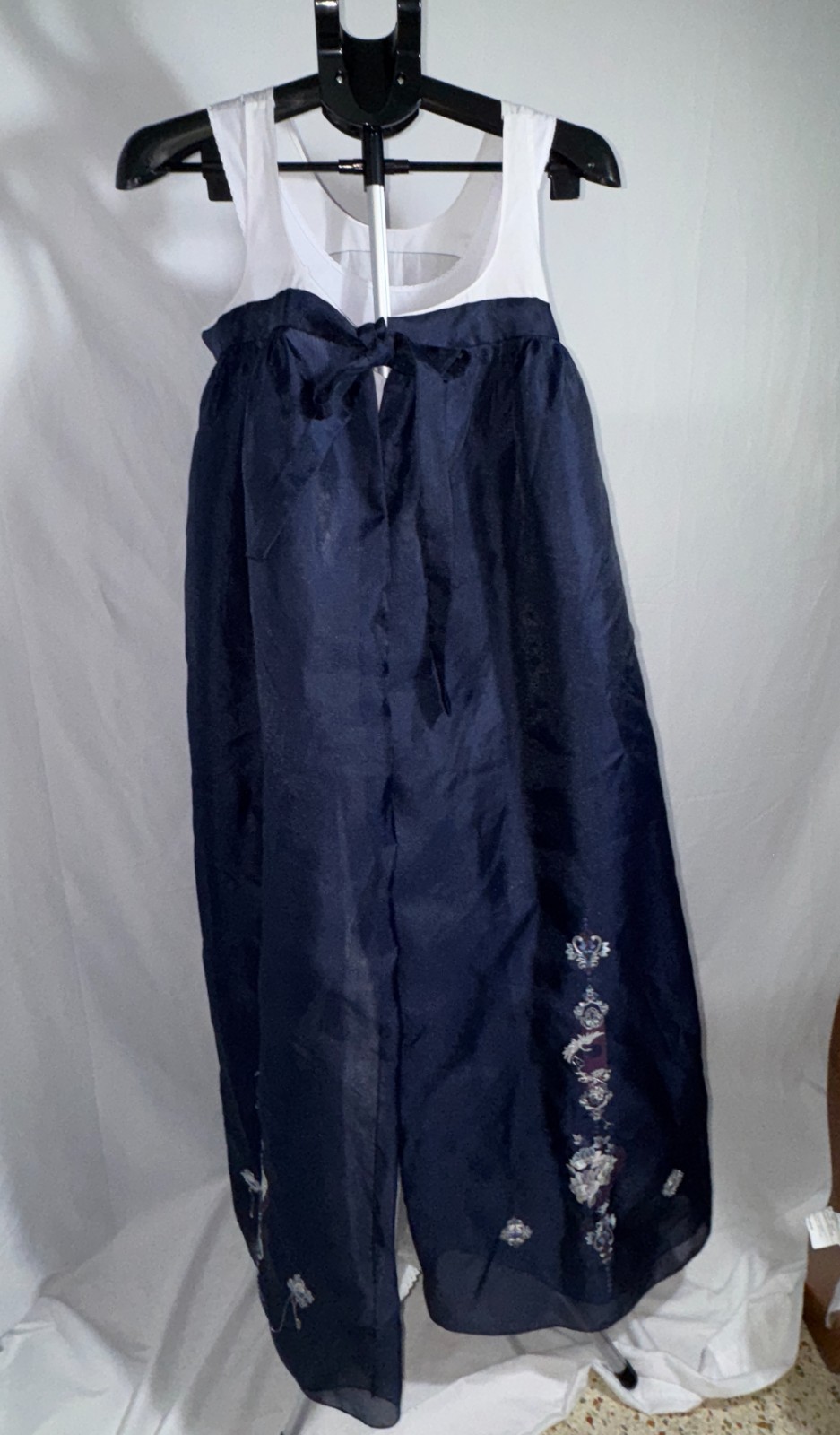 Vintage Korean Hanbok Dress - 3pc Set with Undergarment - Navy Yellow - Floral