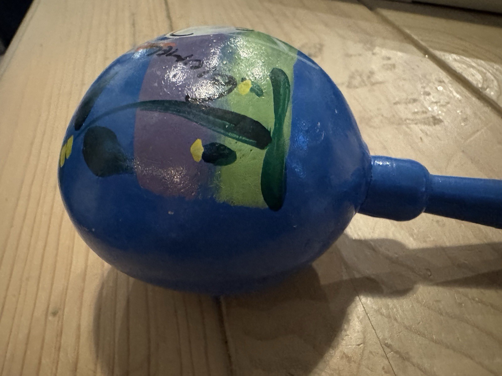 • Gourd Maraca Hand Painted in Mexico, Musical Percussion Rattle COZUMEL Blue