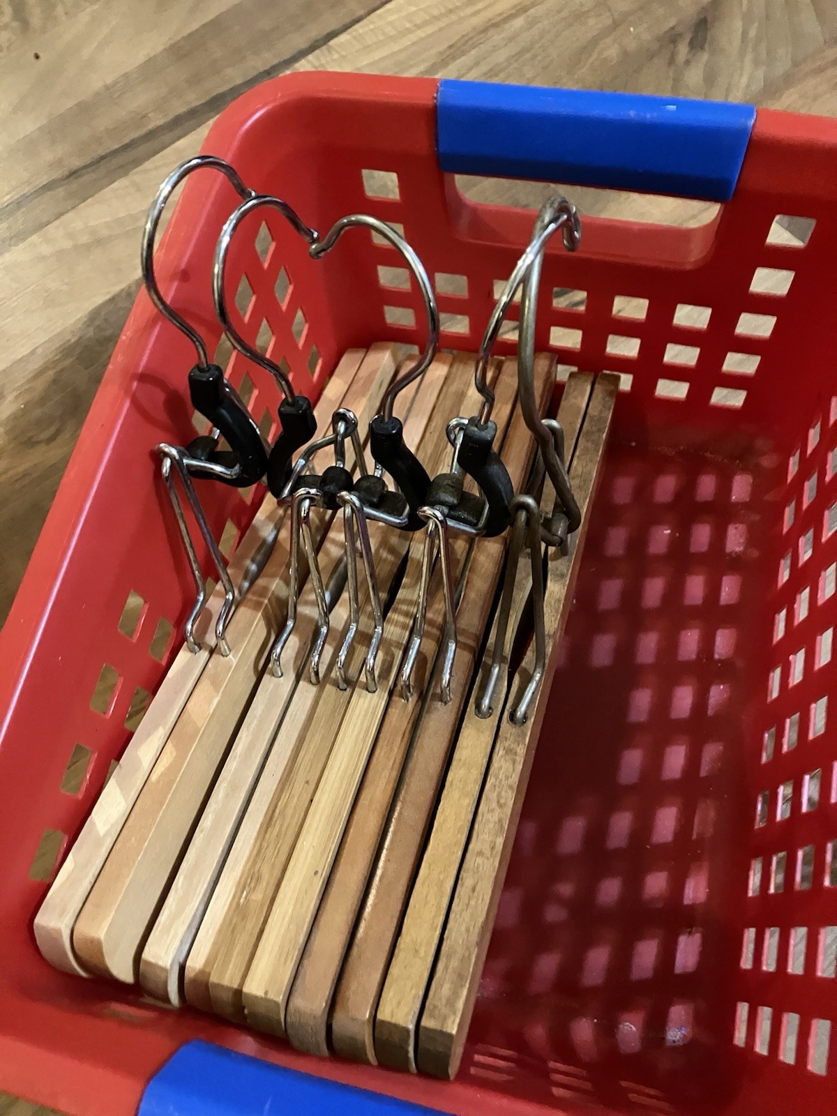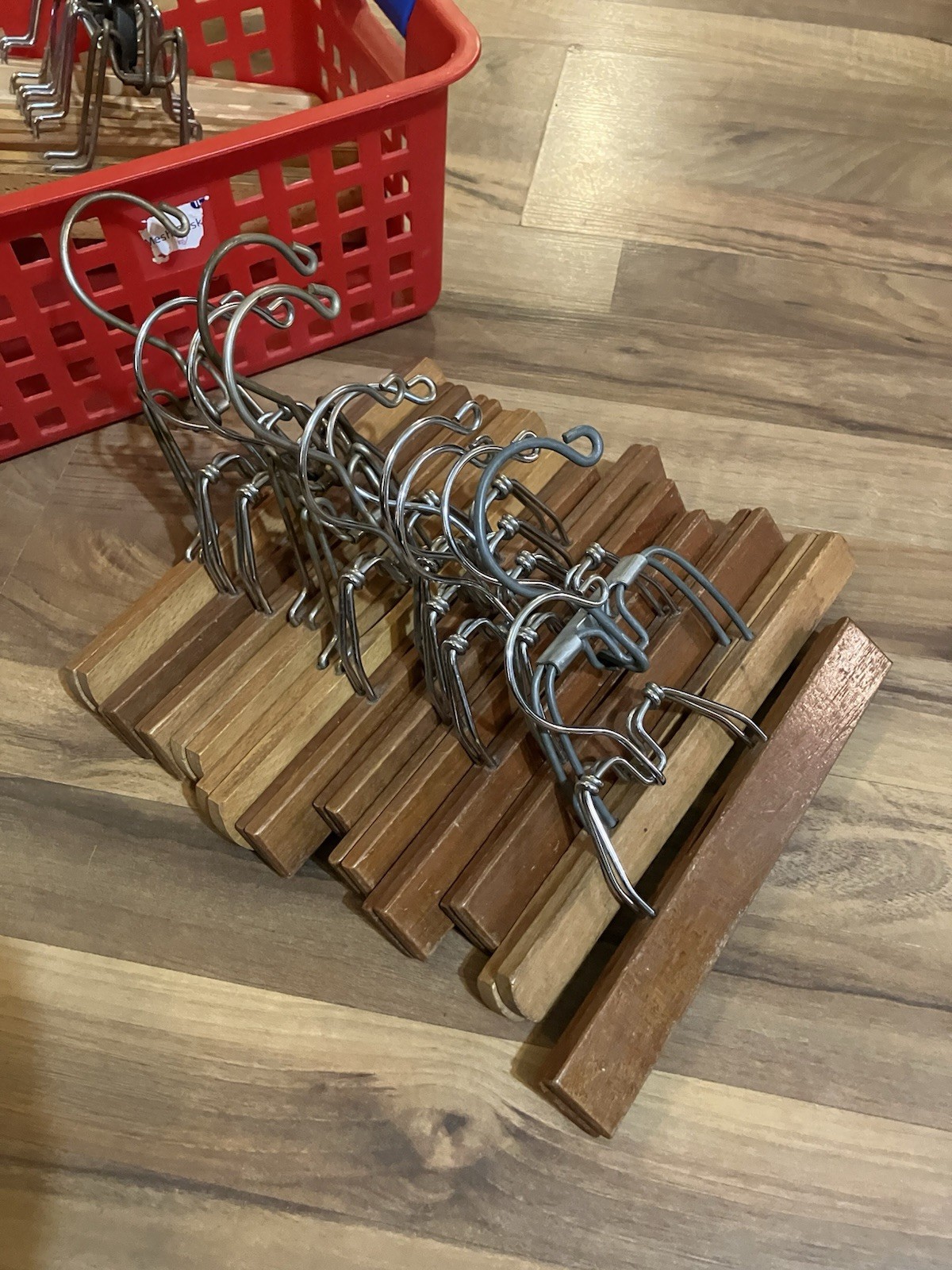 Lot 17 Pc Set Vintage Wood Metal Clamp Hangers Skirts Trousers Pants