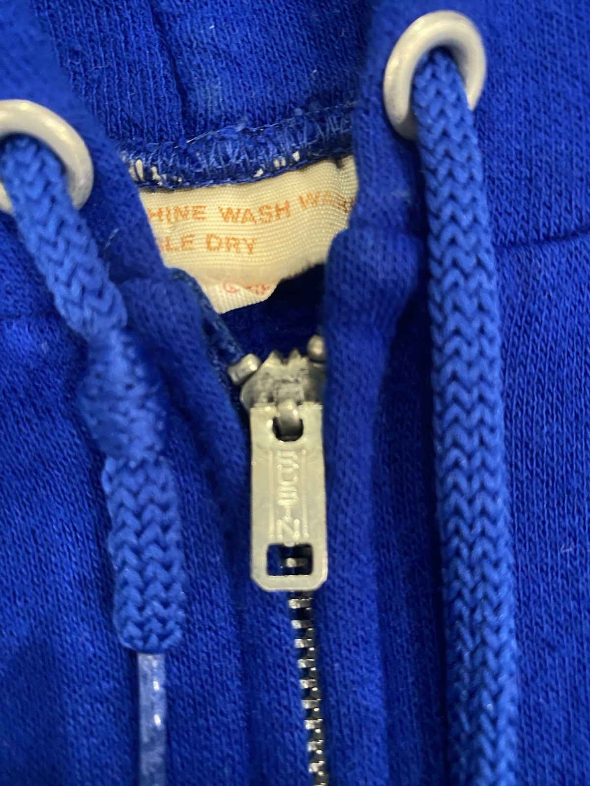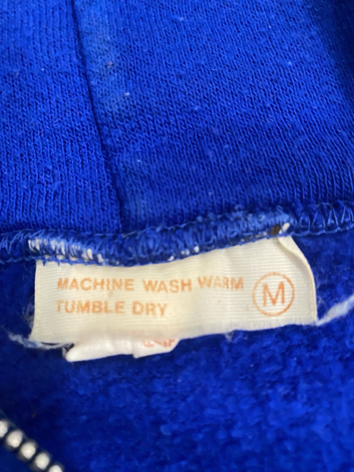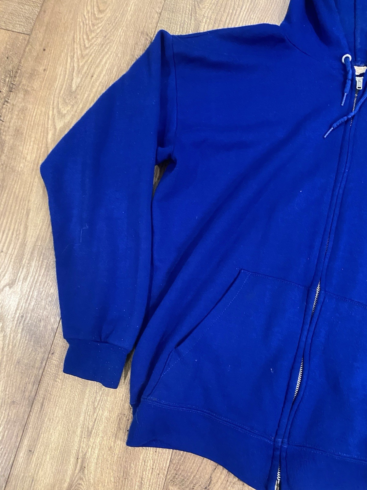 Vintage 70s 80s Deadstock Blue Zip Up Hoodie Sweatshirt Full Zip Size Medium