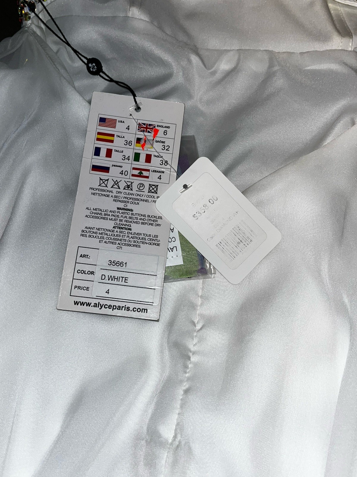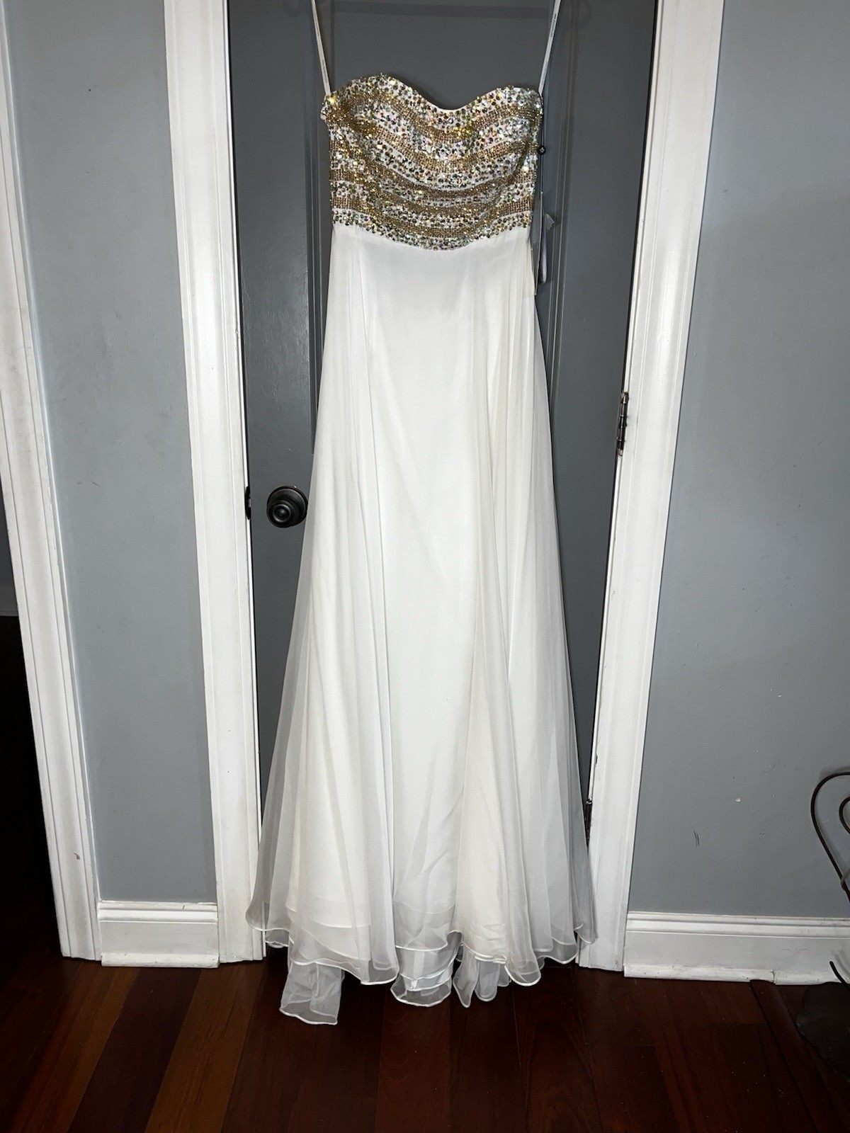 Alyce Paris White Gold Bead Strapless Chiffon Formal Prom Hoco Dress 35661 NWT 4