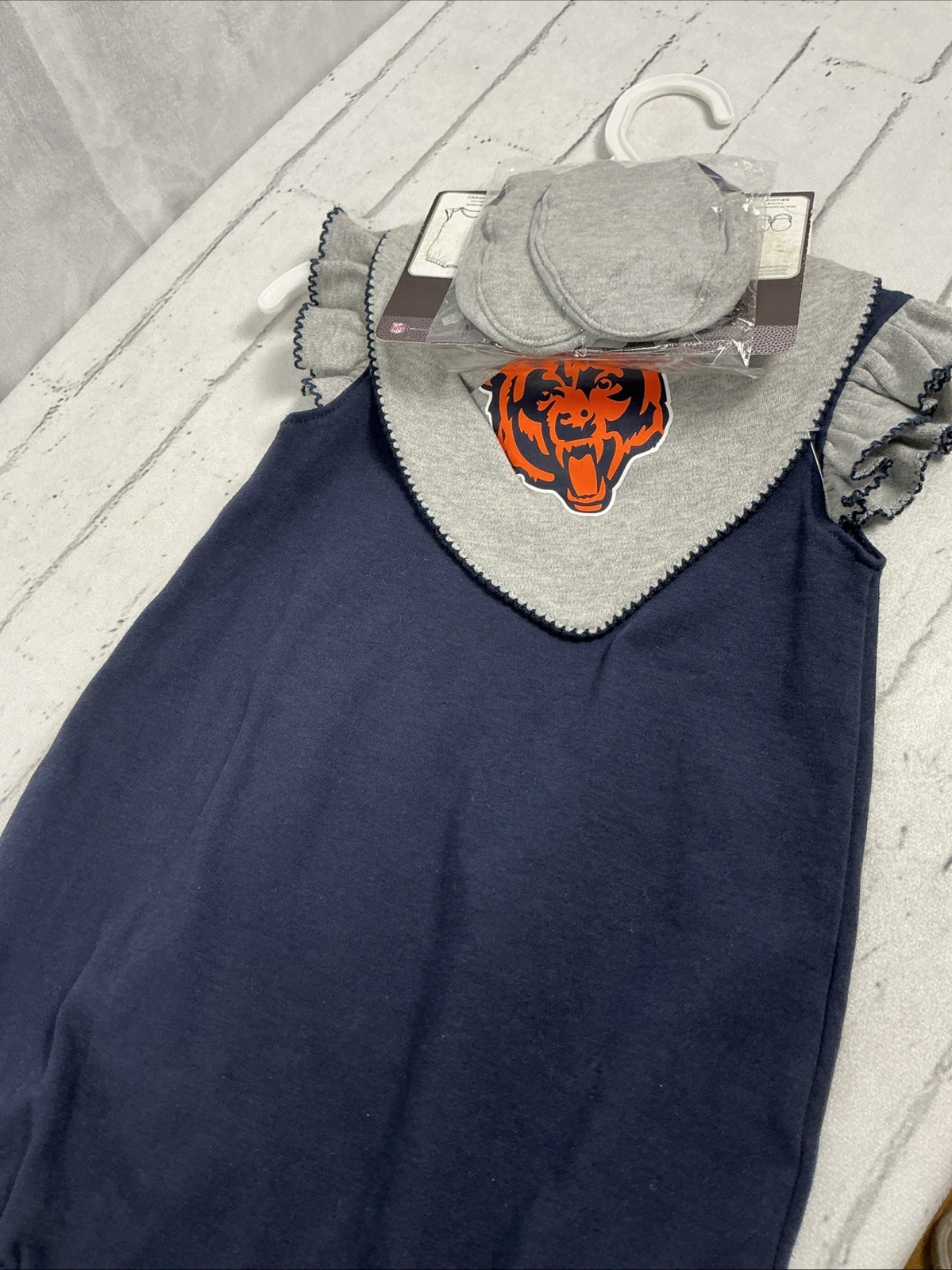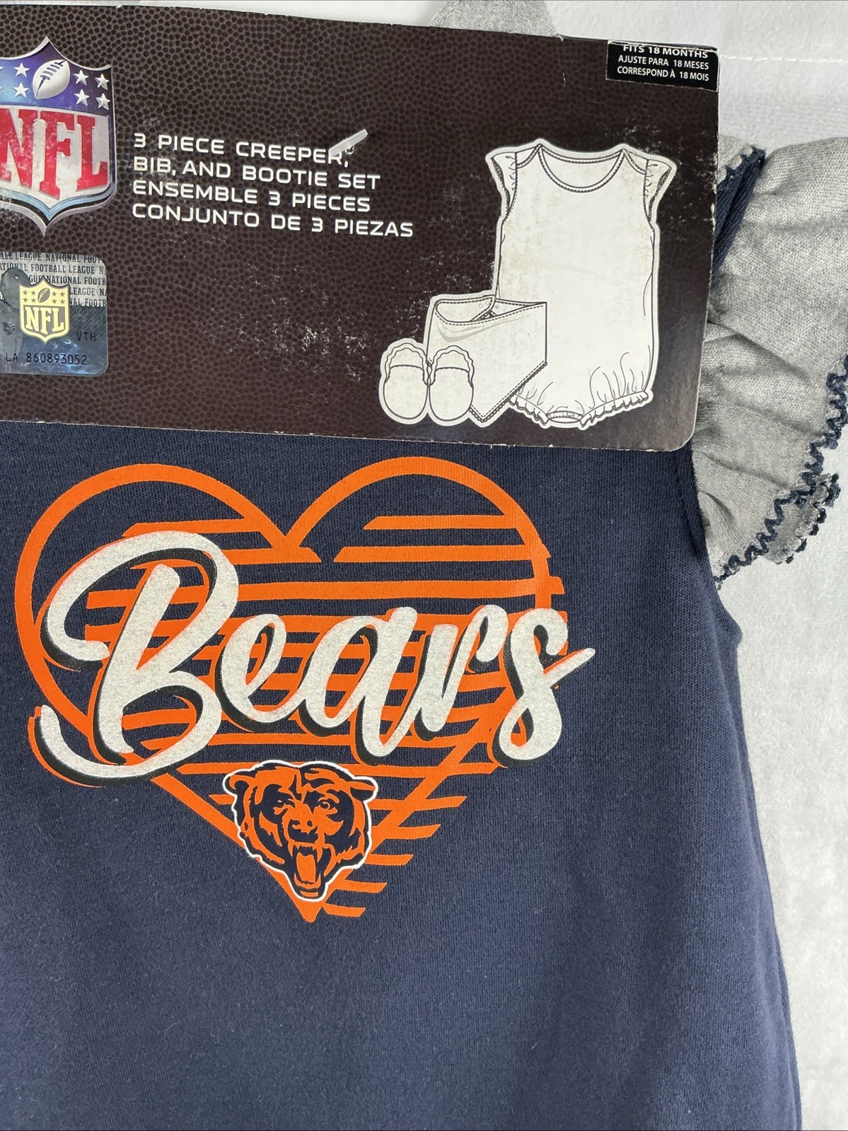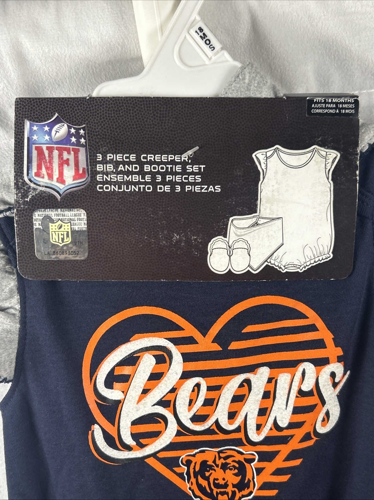 NWT Chicago Bears 3 Piece Creeper, Bib And Bootie Set 18 month