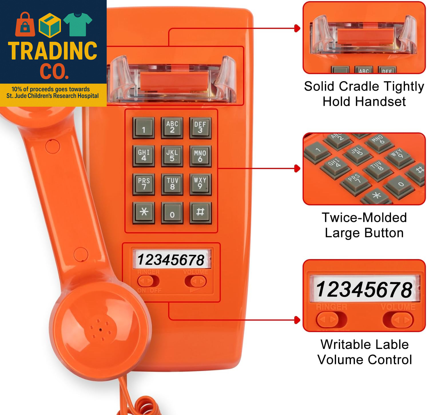 как выглядит Retro Wall Phones for Landline with Loud Mechanical Ringing Vintage Wall Mount P фото