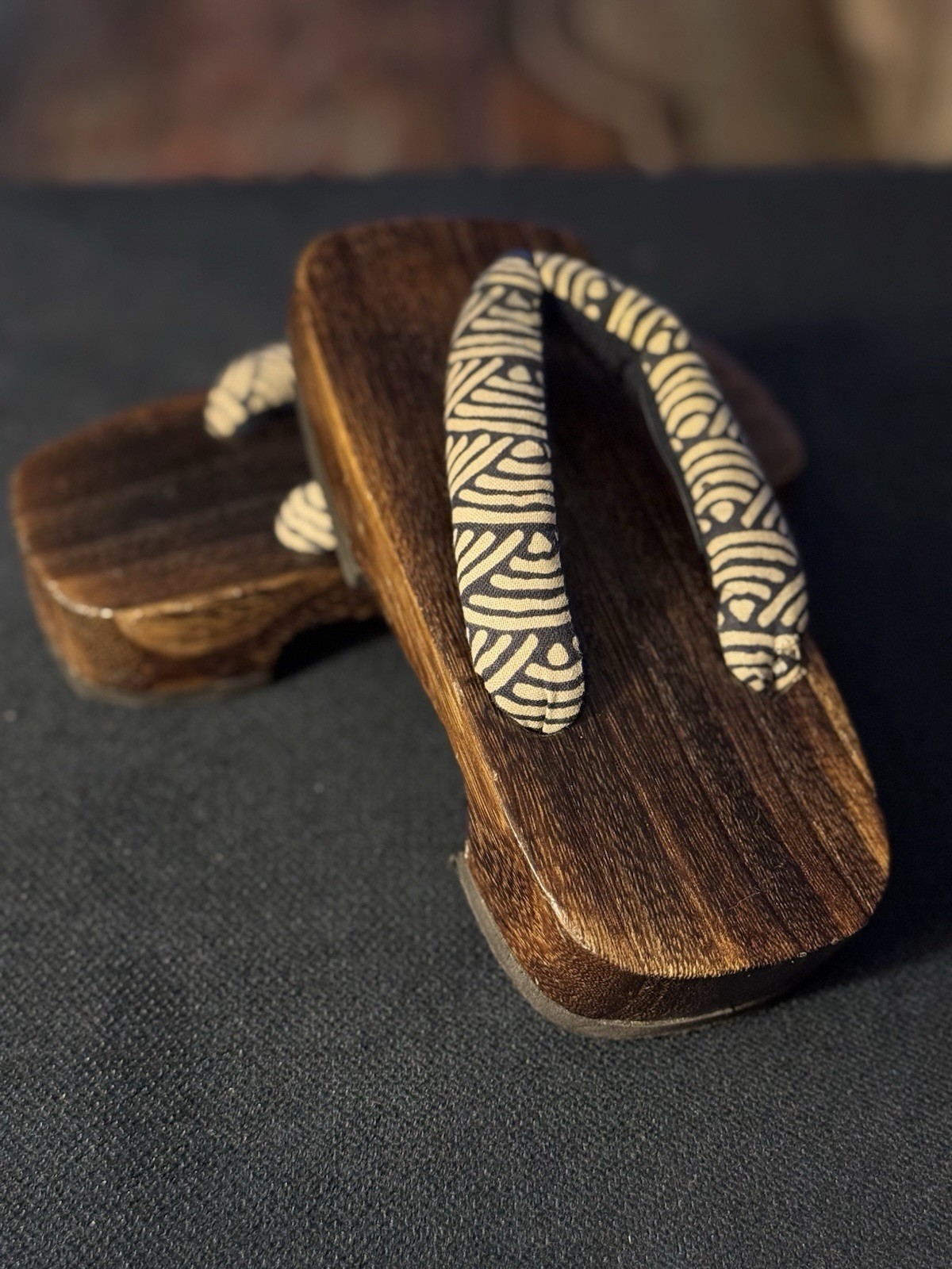 Vintage Japanese Geta Wooden Sandals, Size 19cm kids size Black And White