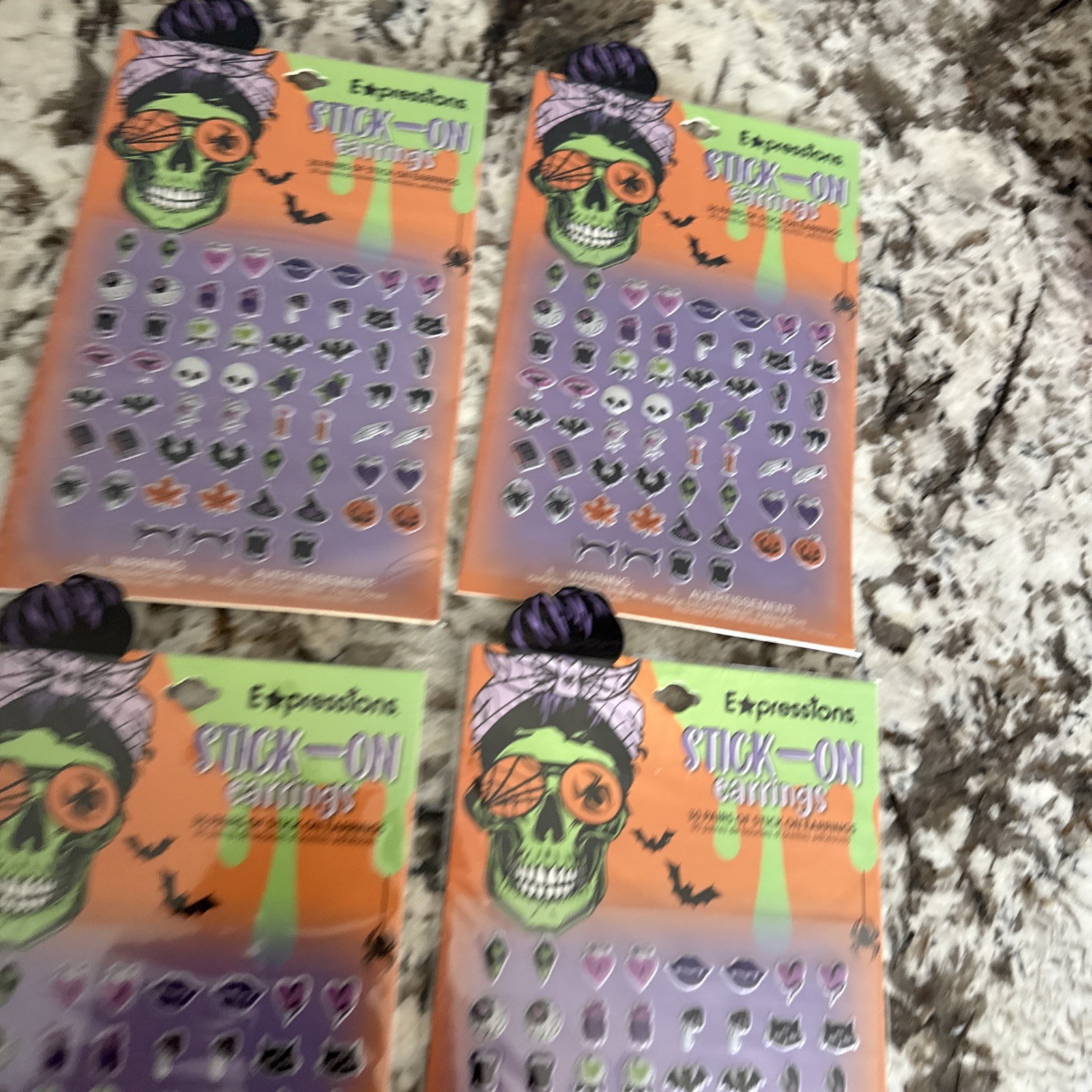 4 Sets 3D Halloween Theme Little Girls Stick On Earrings 30 Pair New In Package