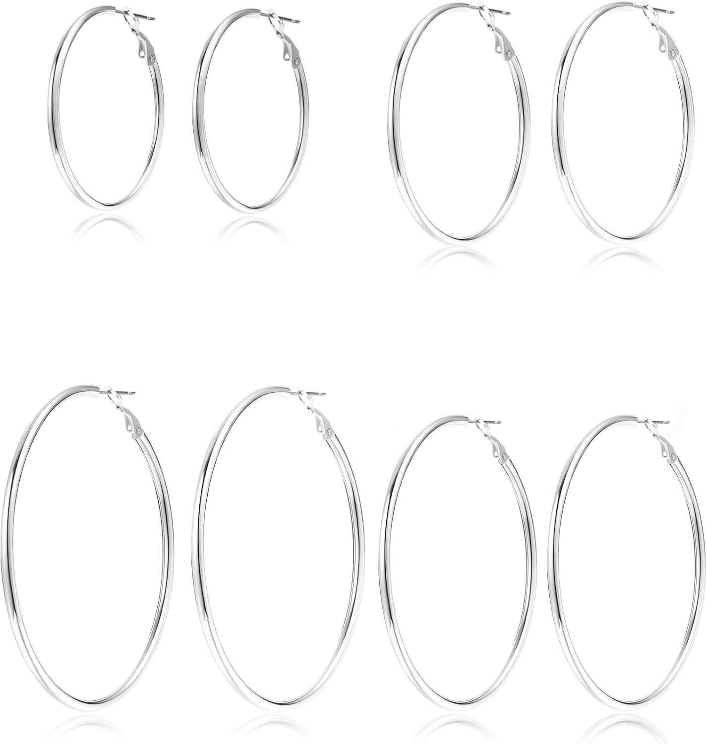 4 Pairs Silver Gold Hoop Earrings for Women 30/40/50/60 Mm Stainless Steel 14K G