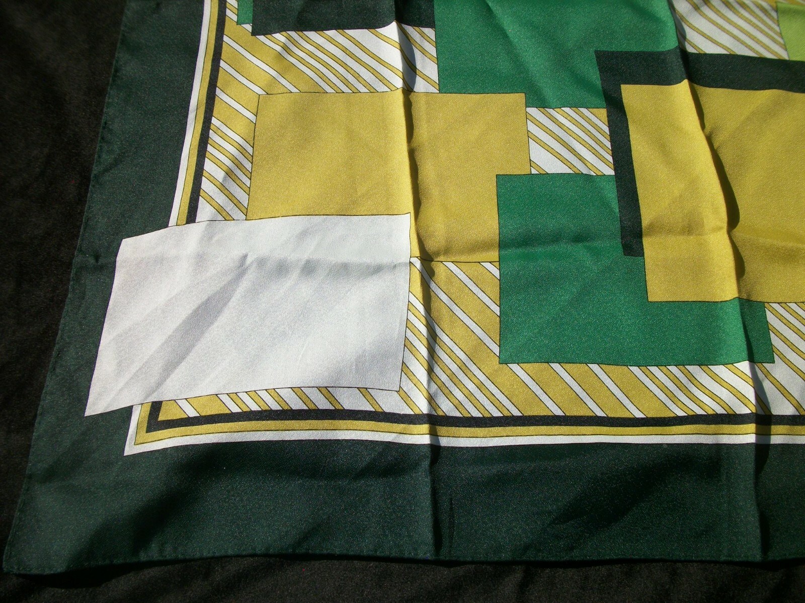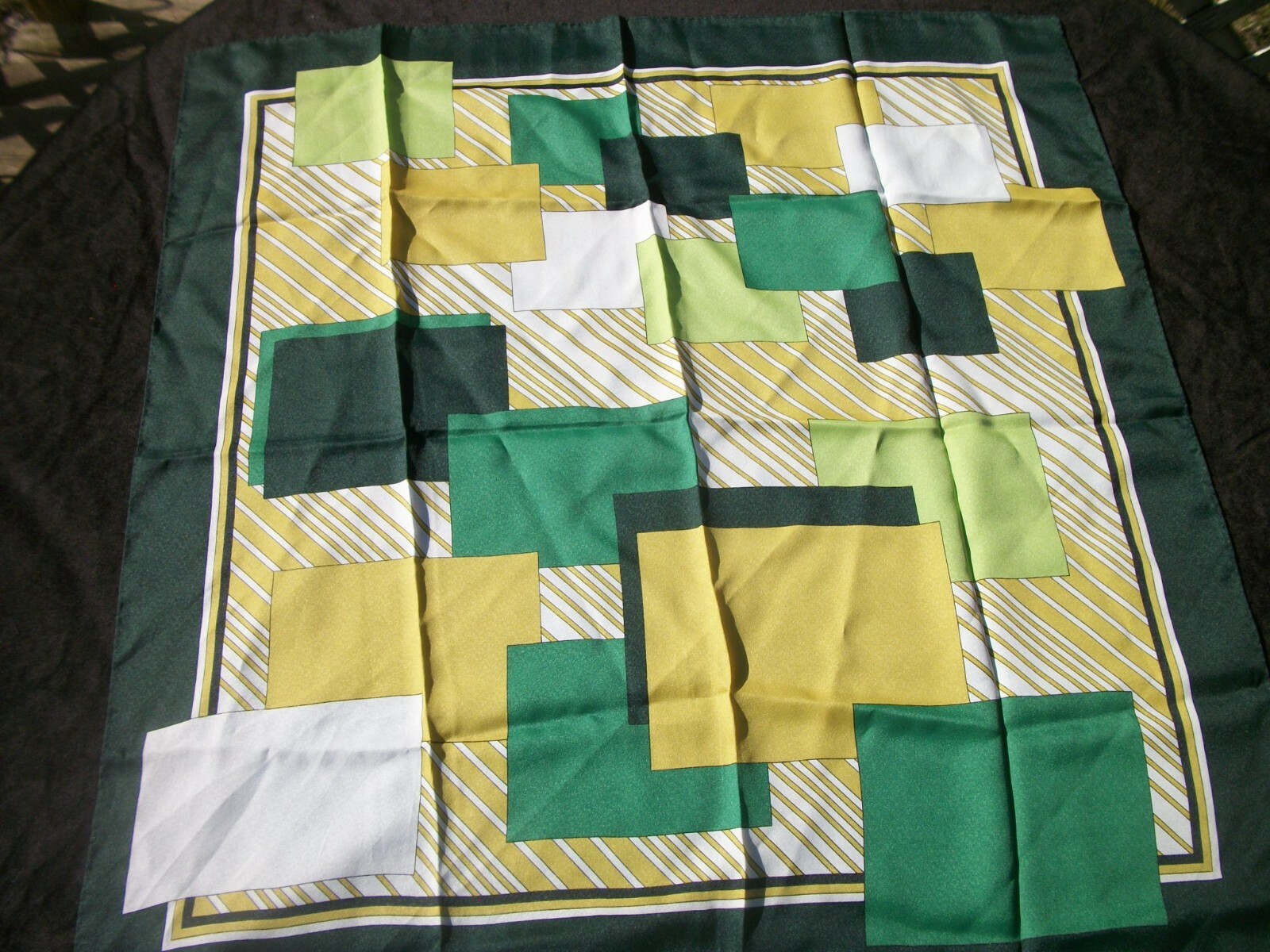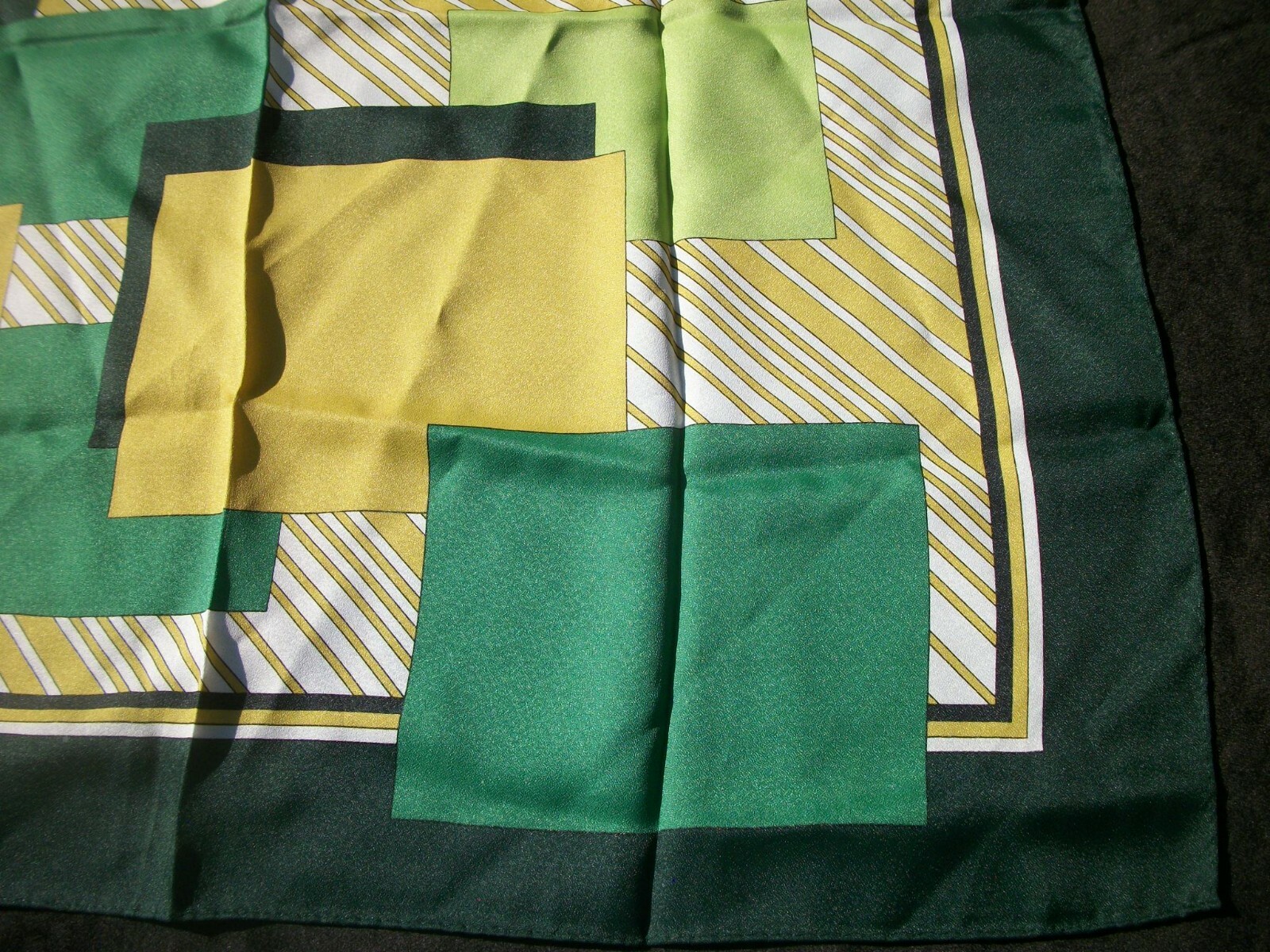Vintage Scarf Geometric Print Shades Green Gold Design SC70