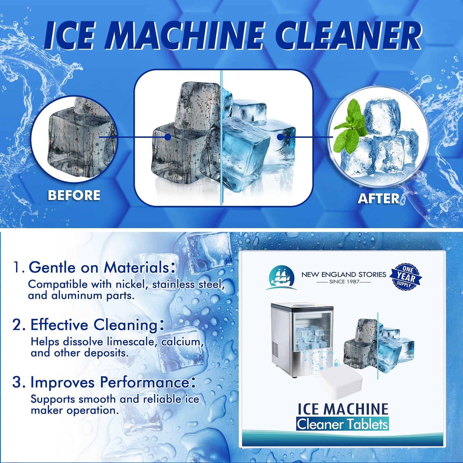 Ice Machine Cleaner and Descaler , 24 Count Nickel Safe Formula, Scale for Co...