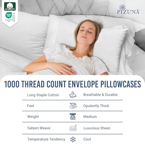 100 Cotton Pillow Cases Queen Size Set of 2 Envelope Pillowcases Queen White