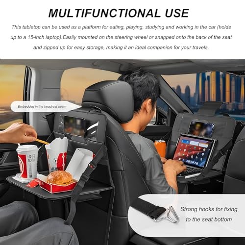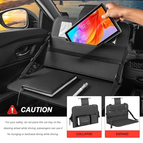 Car Steering Wheel Tray, Foldable Car Laptop Desk Eating Food Tray with Black