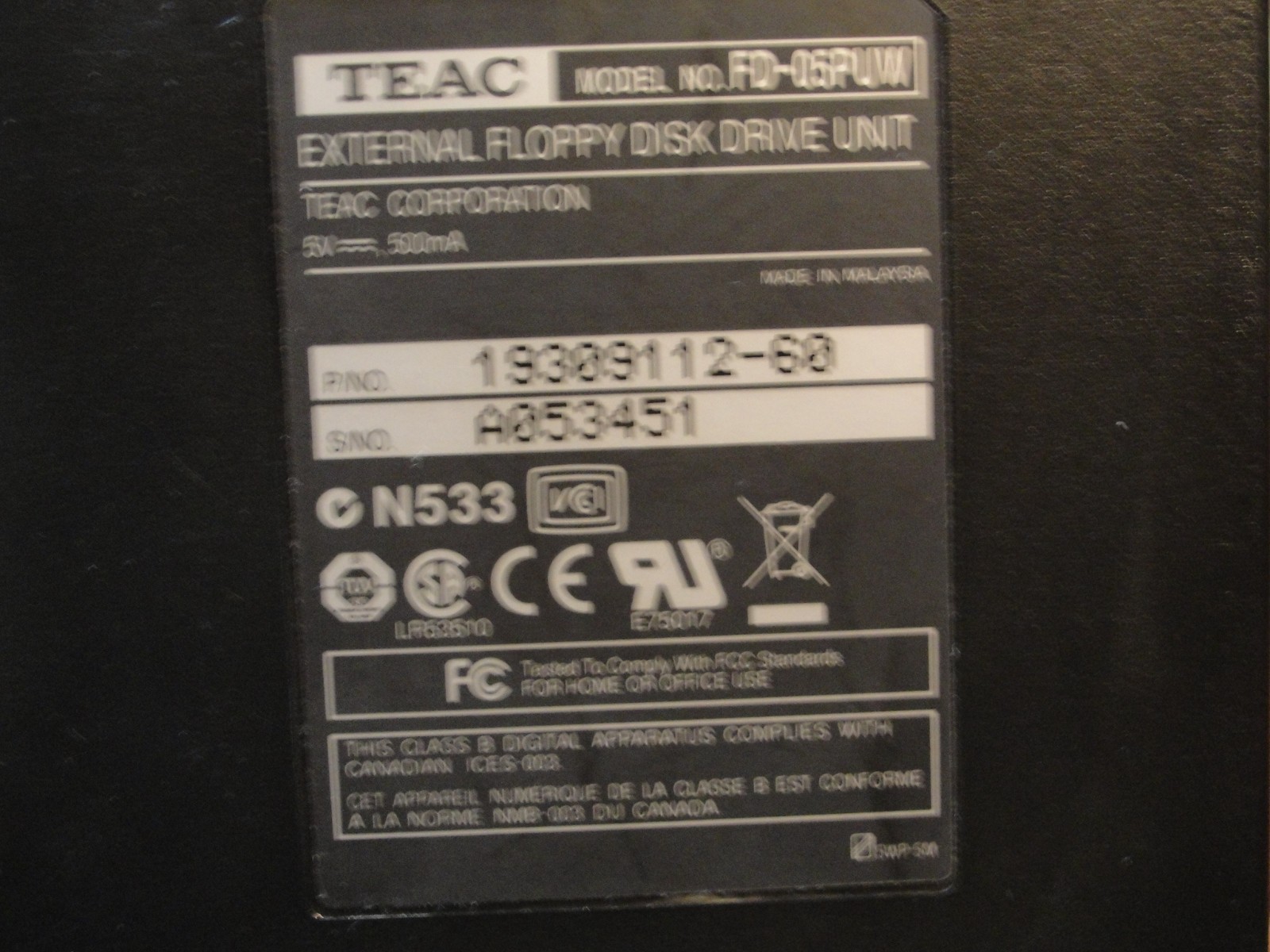 как выглядит TEAC 3.5" External Floppy Disk Drive USB Unit Model FD-05PUW FREE S/H - Used фото