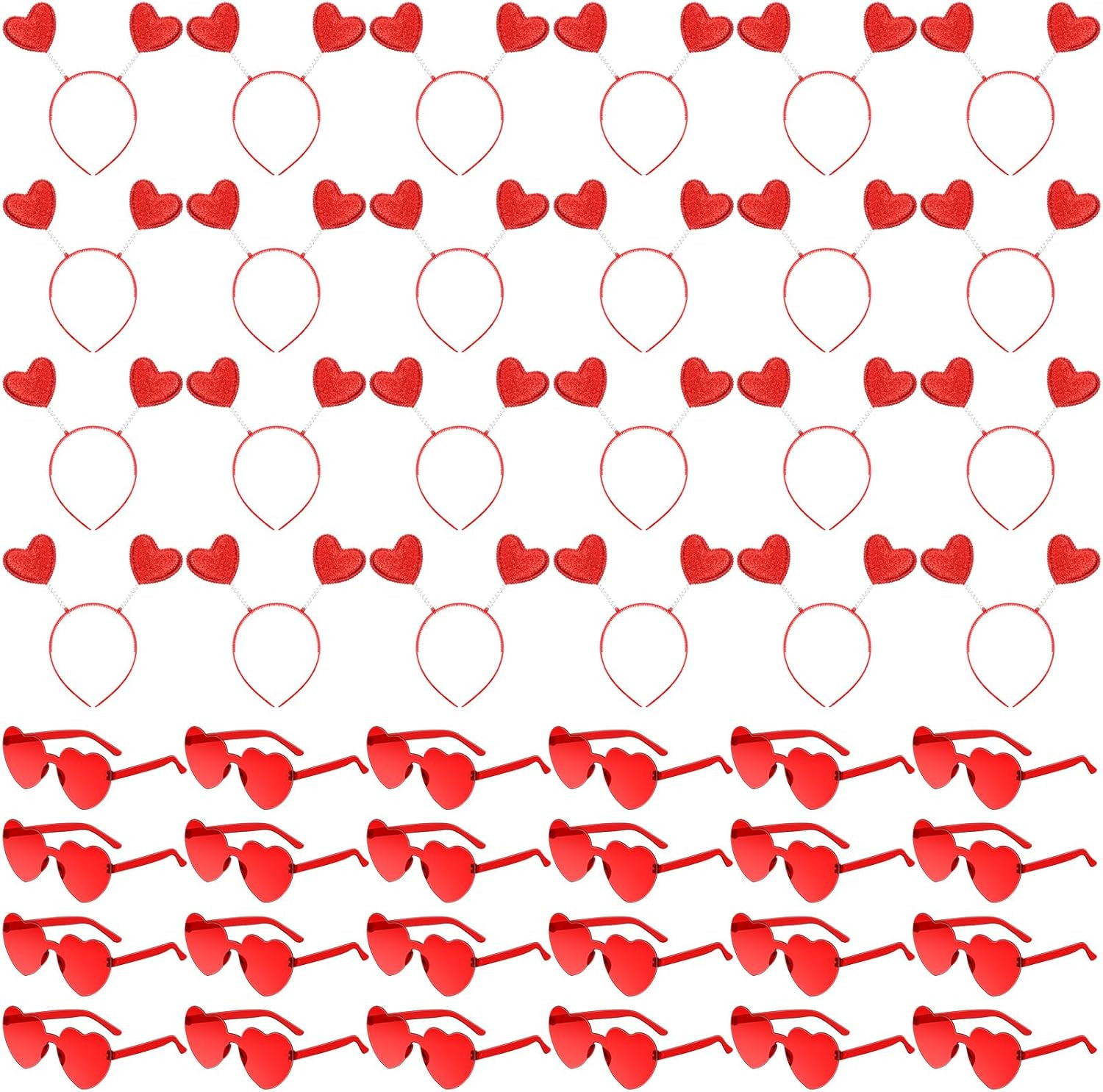 48 Pcs Valentines Heart Head Boppers Headbands and Heart Sunglasses for Party Ac
