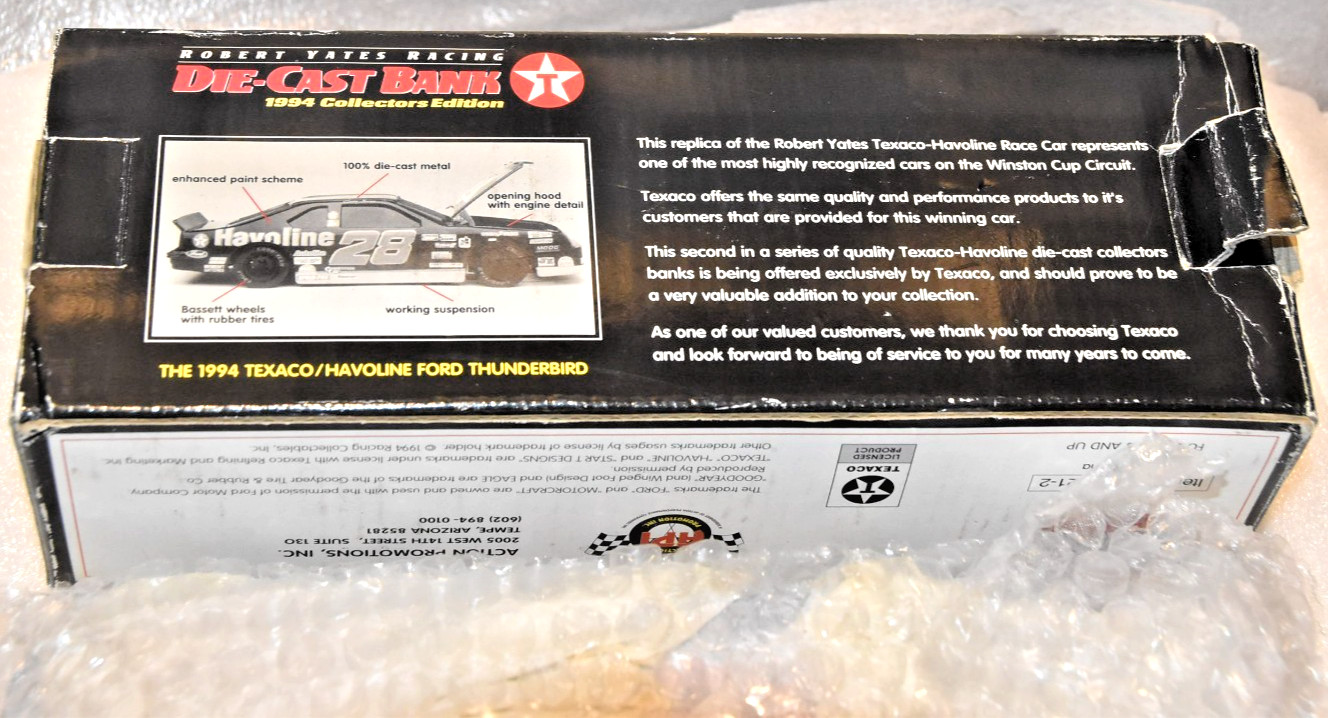 • Texaco Havoline Racing 28 Thunderbird Die-Cast Bank 1994 Collectors Edition /