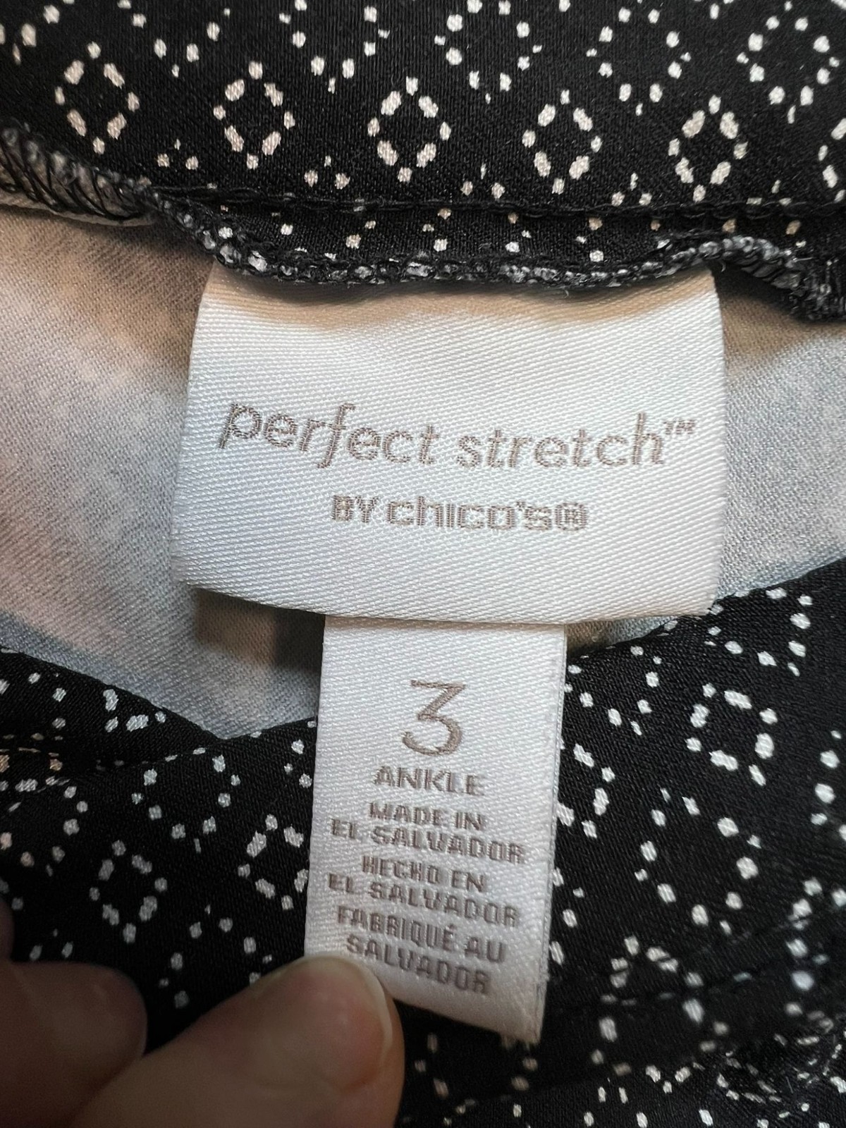 как выглядит Chicos Womens Perfect Stretch Pull-On Ankle Pants Size 3 Black White Geometric фото