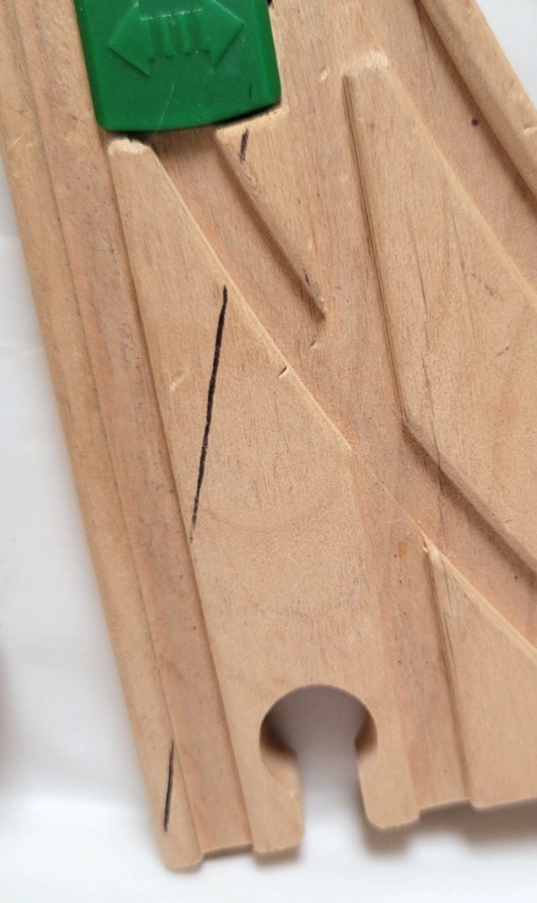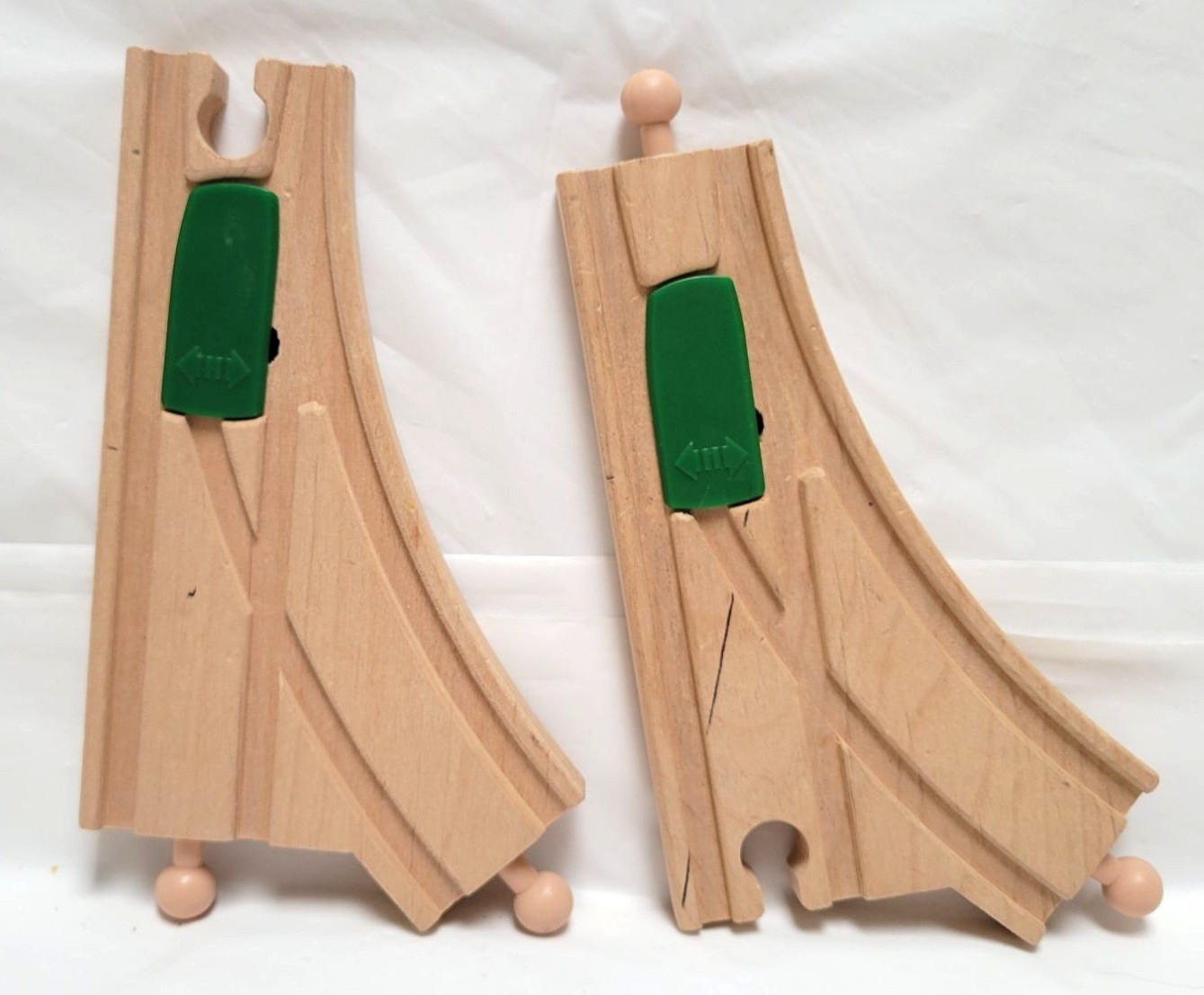 Vintage Lot of 2 Brio Wood Curved Switching Track Pieces Green Levers