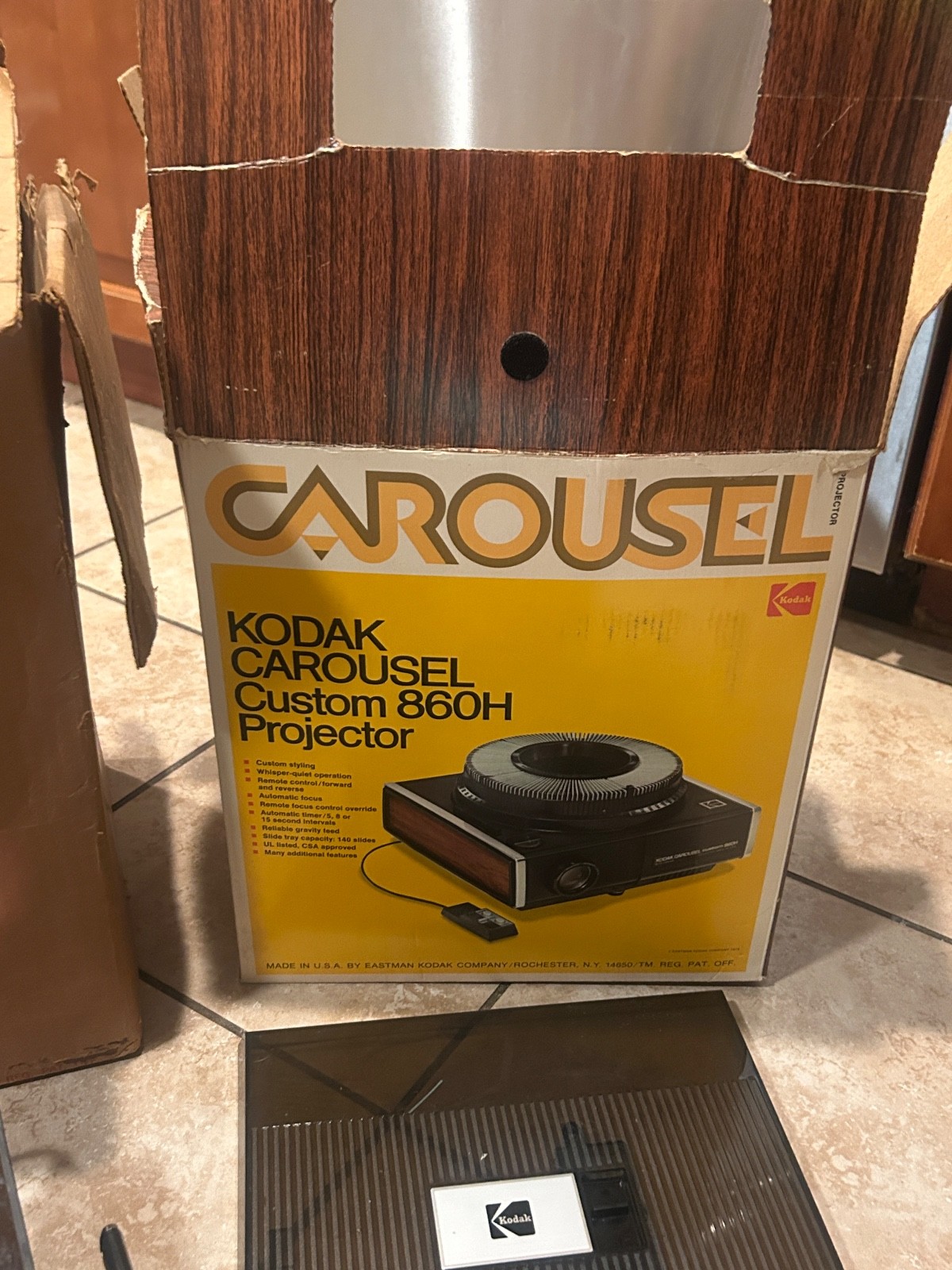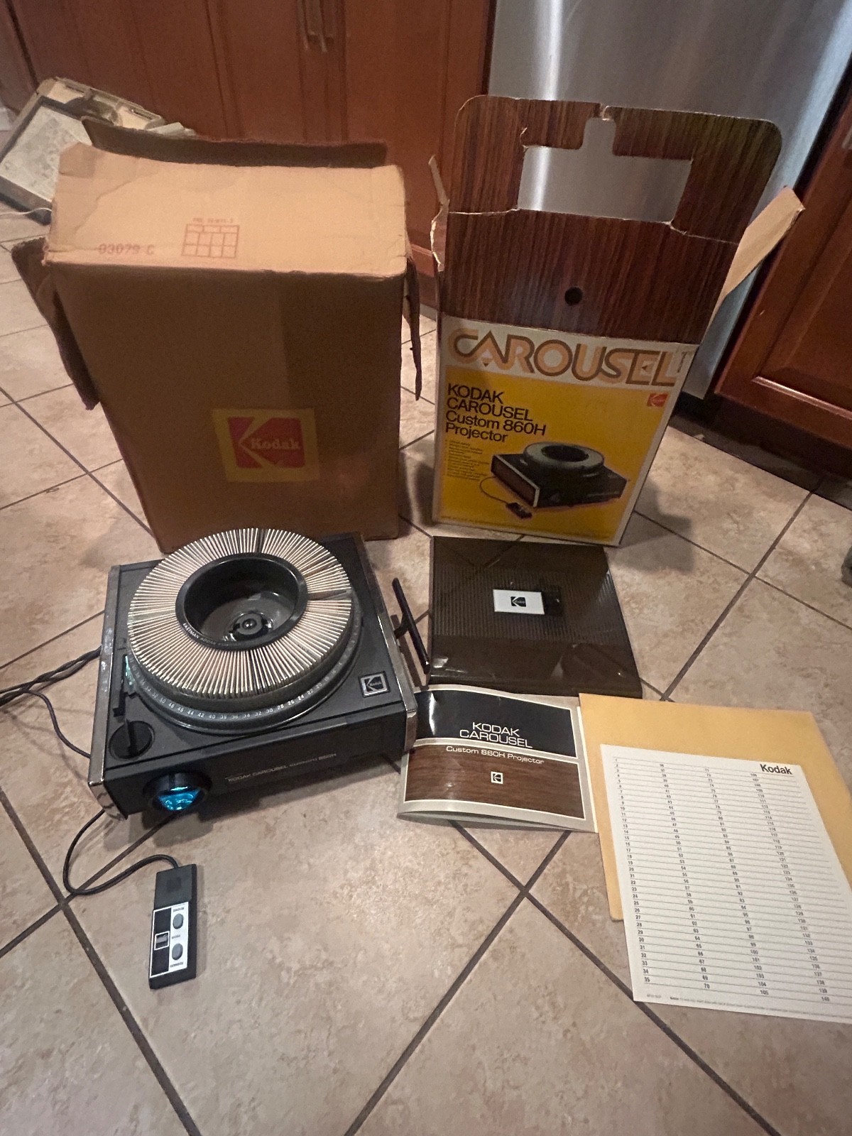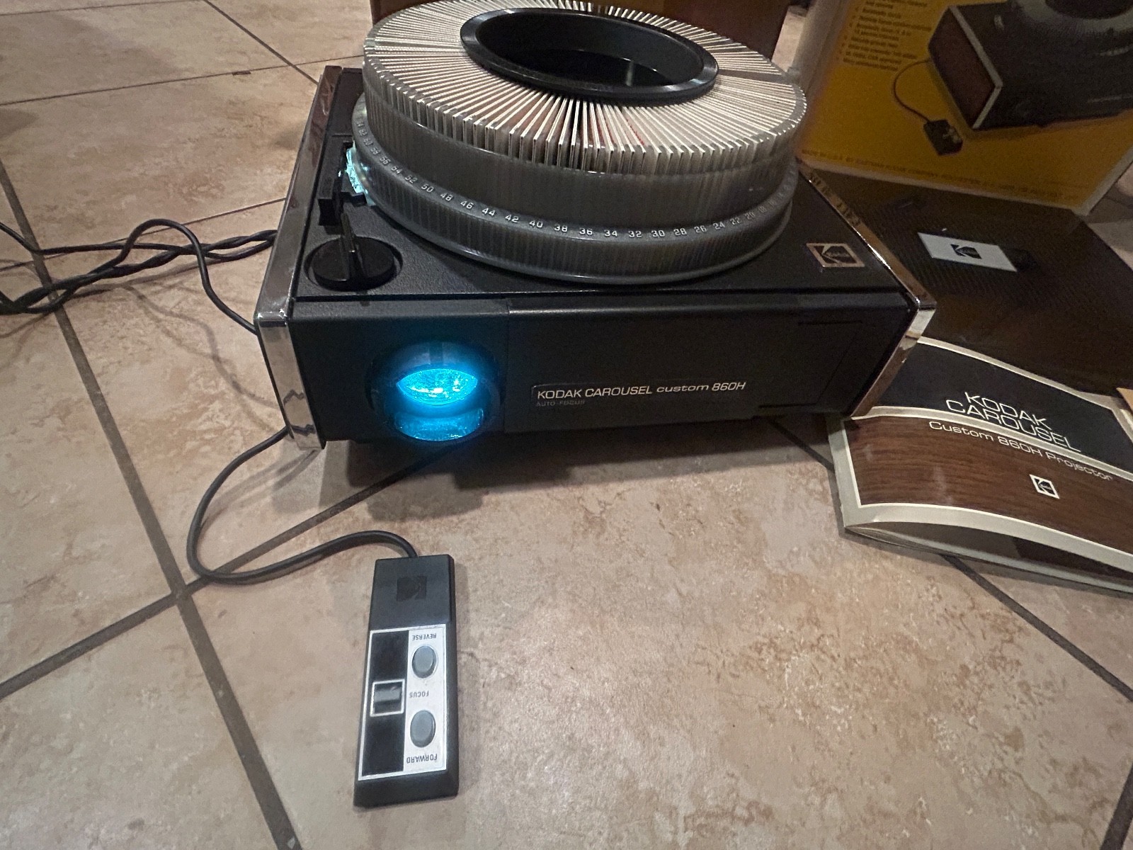 Vintage Kodak Carousel Slide Projector 860H 35mm w Cover Remote Manual Box VIDEO