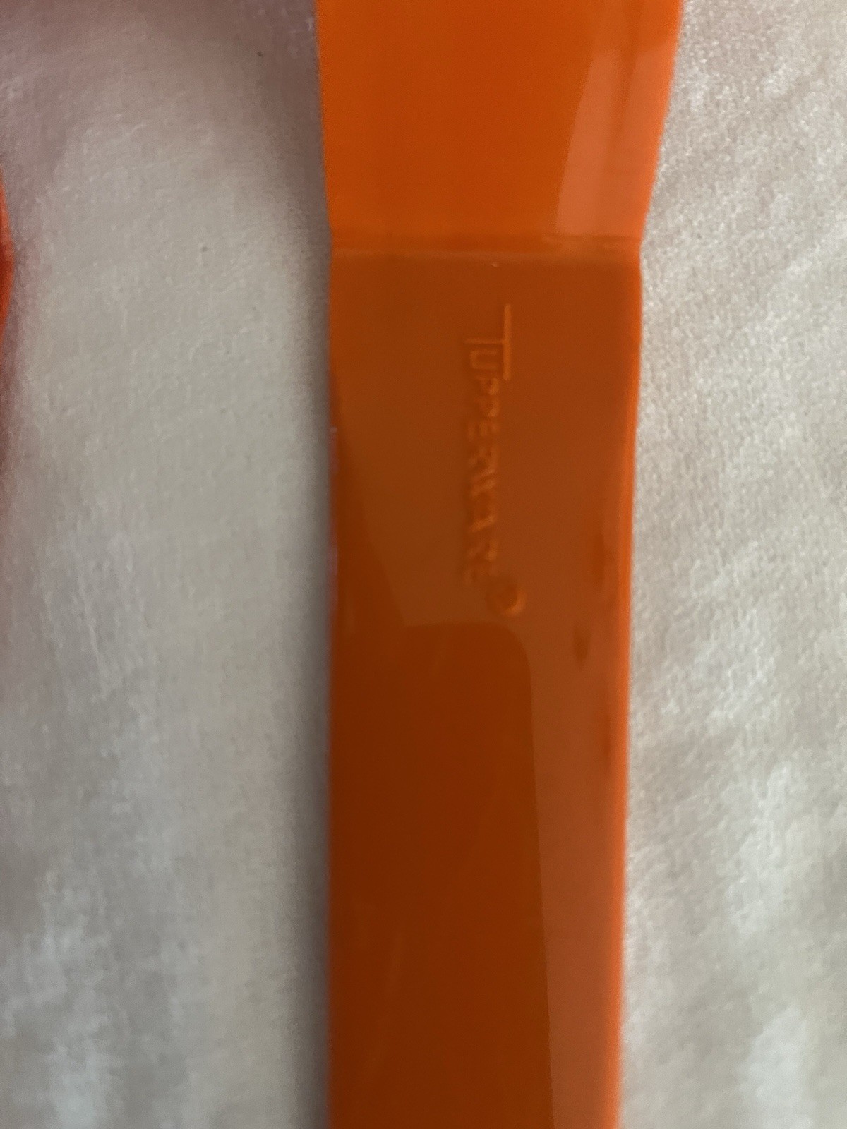 как выглядит 2 Vintage Tupperware Cake Pie Servers Orange Serrated Edge Beveled 1228 фото