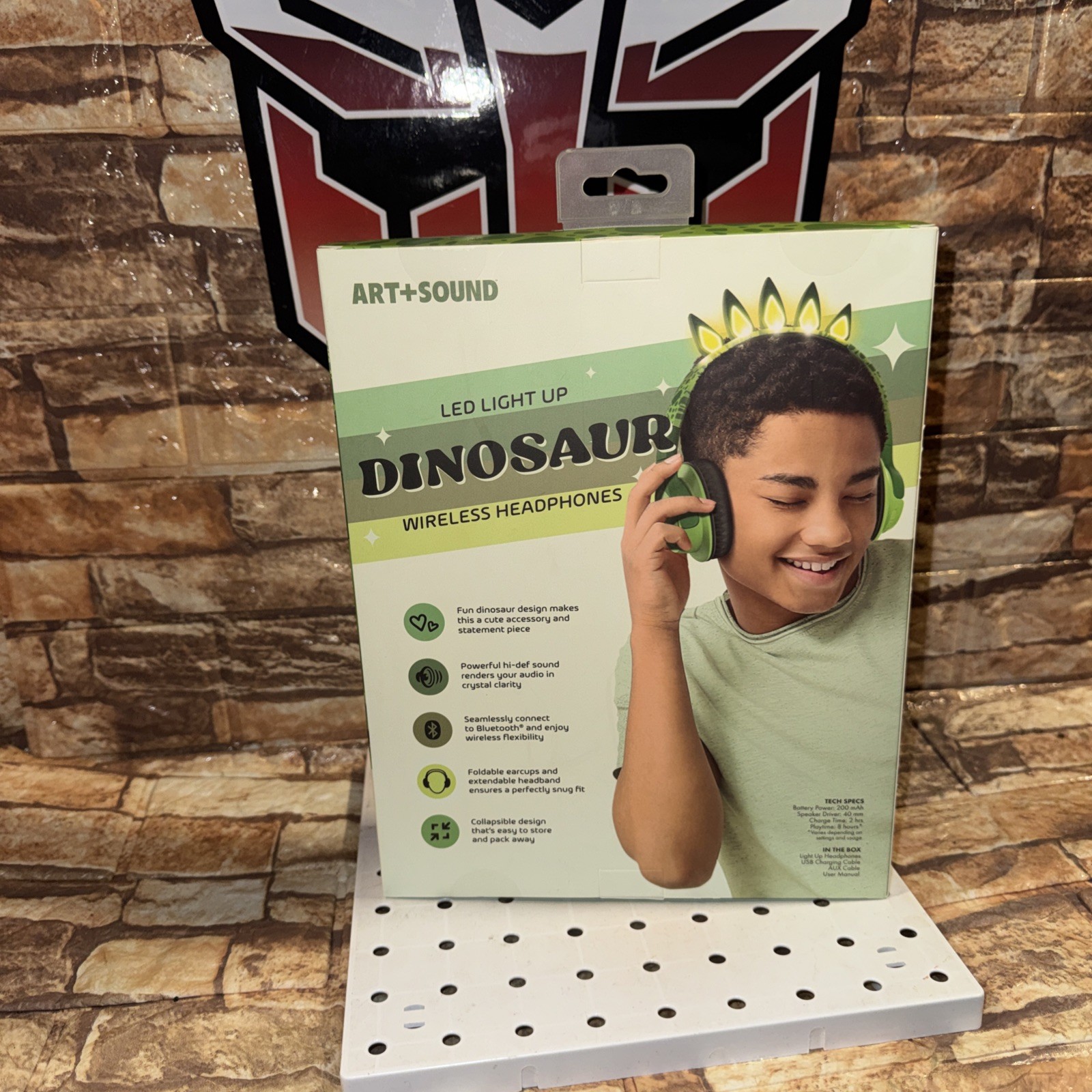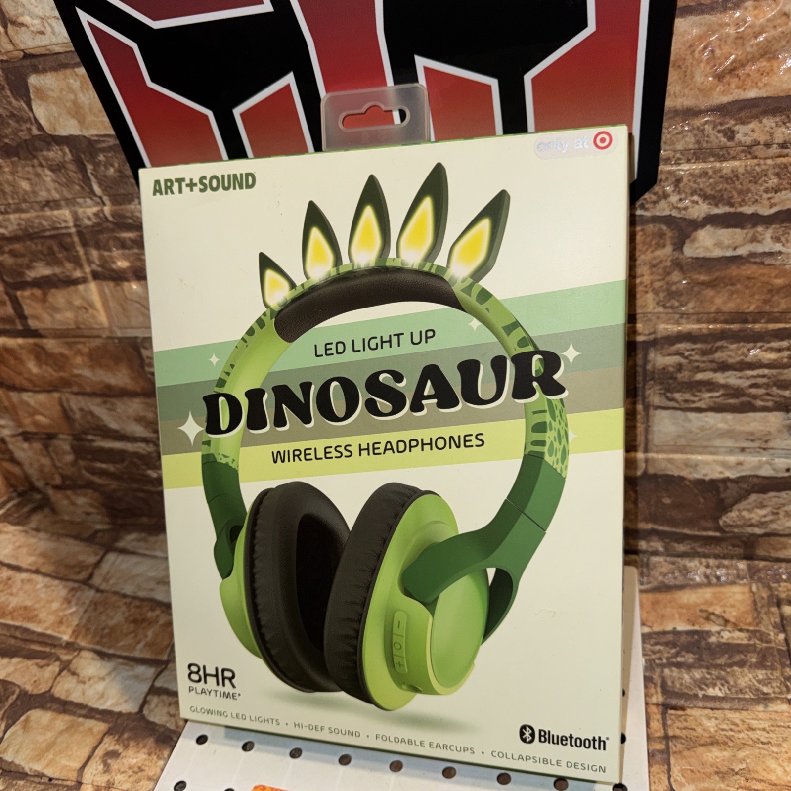 Art Sound LED Light Up Dinosaur Wireless Headphones Bluetooth 8HR HI Def Folds