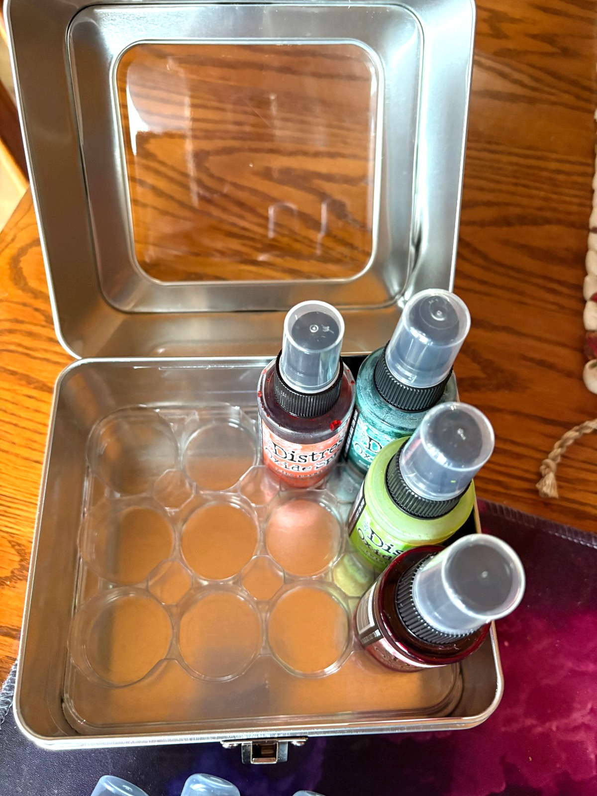 Tim Holtz Distress Oxide Sprays Storage Case. Only 4 Out of 12 Sprays Used.
