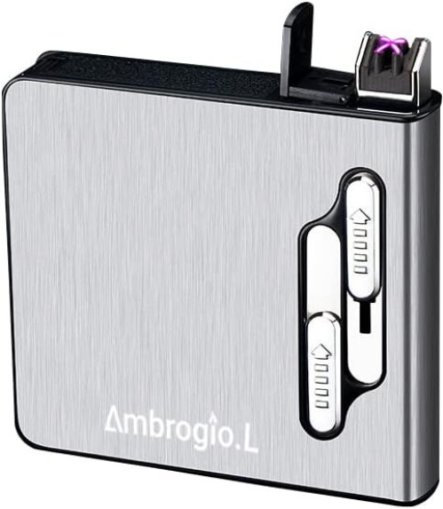 • Moisture-Proof Silver Cigarette Case USB Lighter - Elegant Smoking Accessory