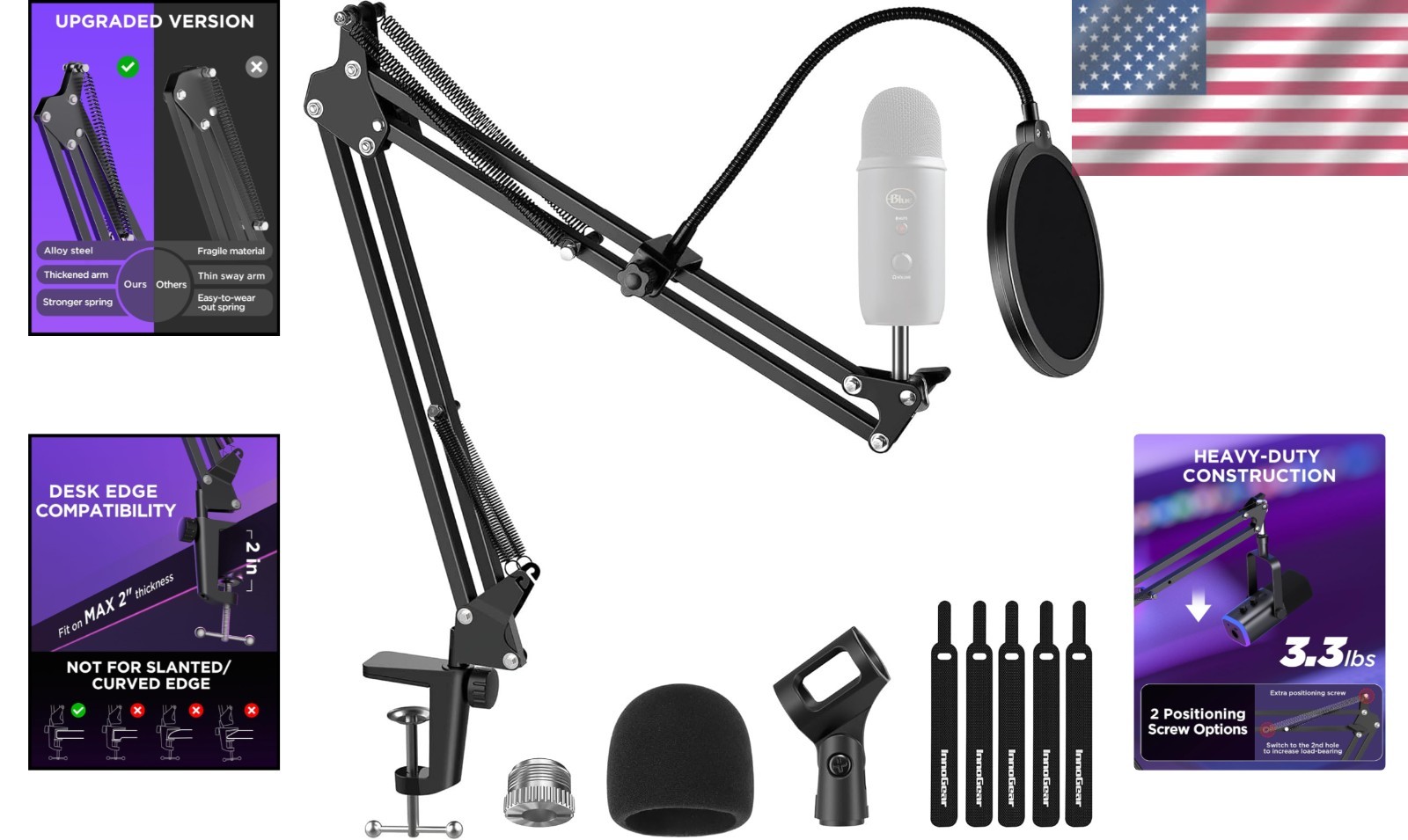 Особенности: Height-Adjustable, Heavy Duty Construction, Portable, Universal Compatibility, Includes Microphone Windscreen, Includes Pop Filter