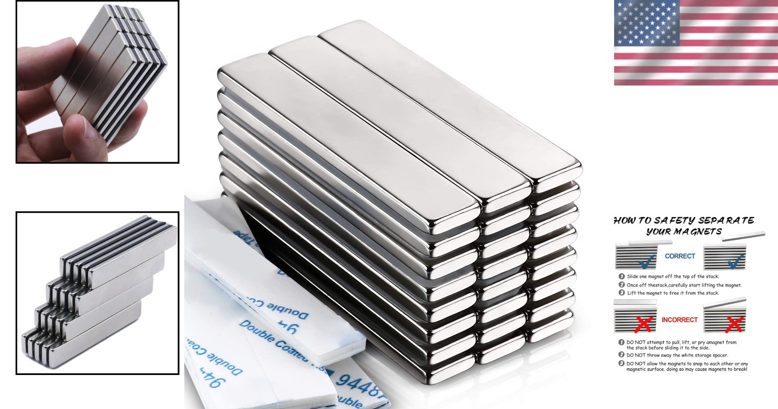 • 24-Pack Powerful Neodymium Bar Magnets, 60x10x3 mm, 18 lb Holding Strength