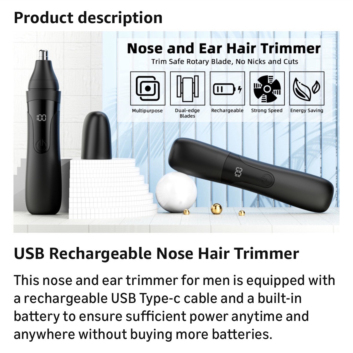 New Ear Nose Hair Trimmer with LED Indicator USB Rechargeable Water Resistant